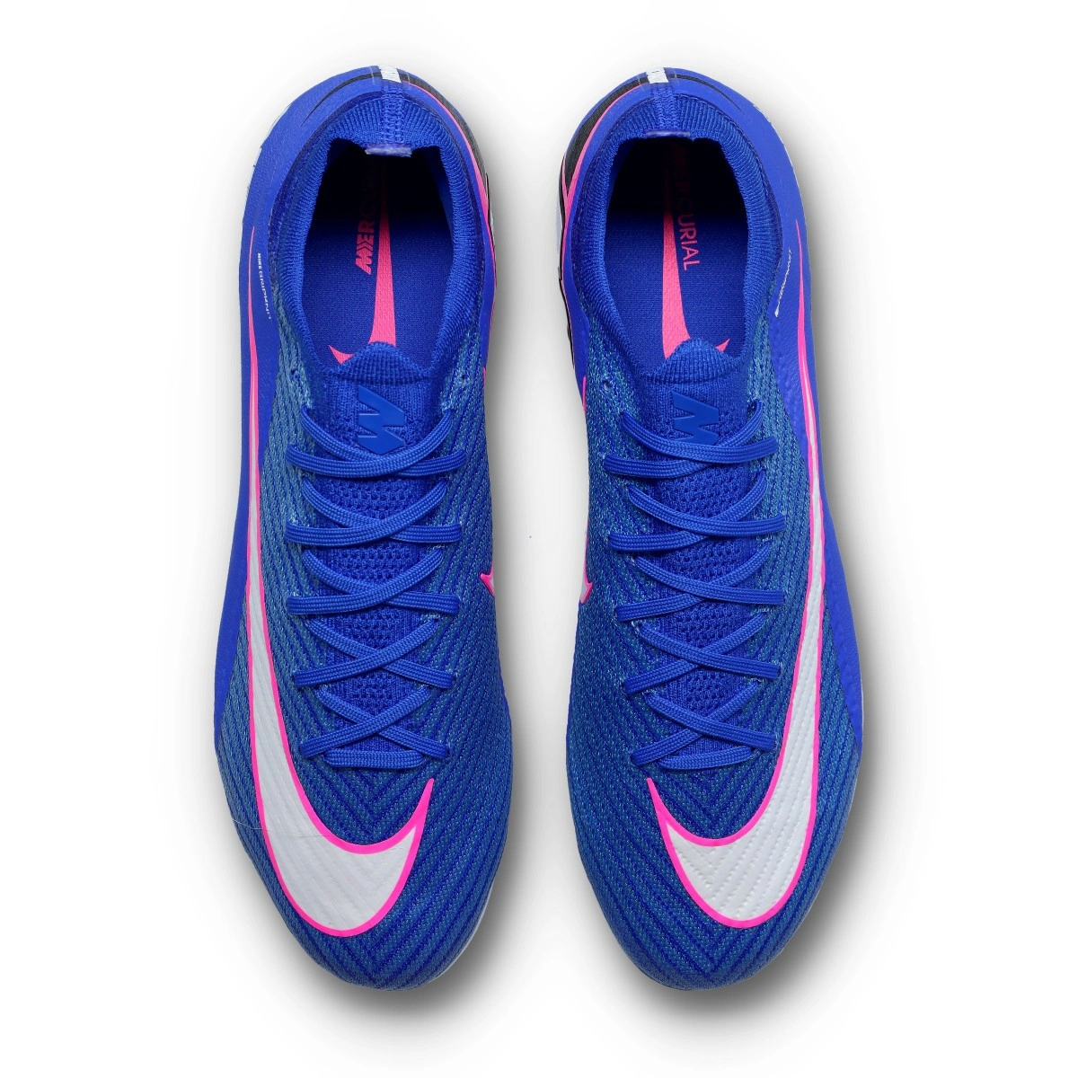 Nike Air Zoom Mercurial Vapor 16 Elite FG Fußballschuhe für Erwachsene. Strickschuhe ohne Socke, für den Einsatz auf Naturrasen. High-End-Schuhe für schnelle Spieler in der Farbe Racer Blue-White.