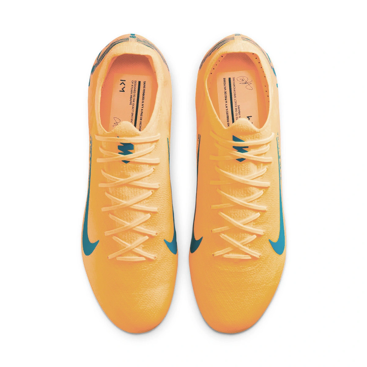 Entworfen für Kylian Mbappés pure Geschwindigkeit, kommen die neuen Stiefel des französischen Stars in einem lebendigen orangefarbenen Ton, der bereits in früheren Ausgaben präsent war. Mit einem leichten und explosiven Design feiert dieses Pack Mbappés neue Ära bei Real Madrid, indem es Hochleistungstechnologie mit exklusiven Details kombiniert: sein persönliches Logo, Verweise auf Frankreich und den weißen Verein. Entworfen für alle, die einen Unterschied machen wollen. Holen Sie sich jetzt Ihre!