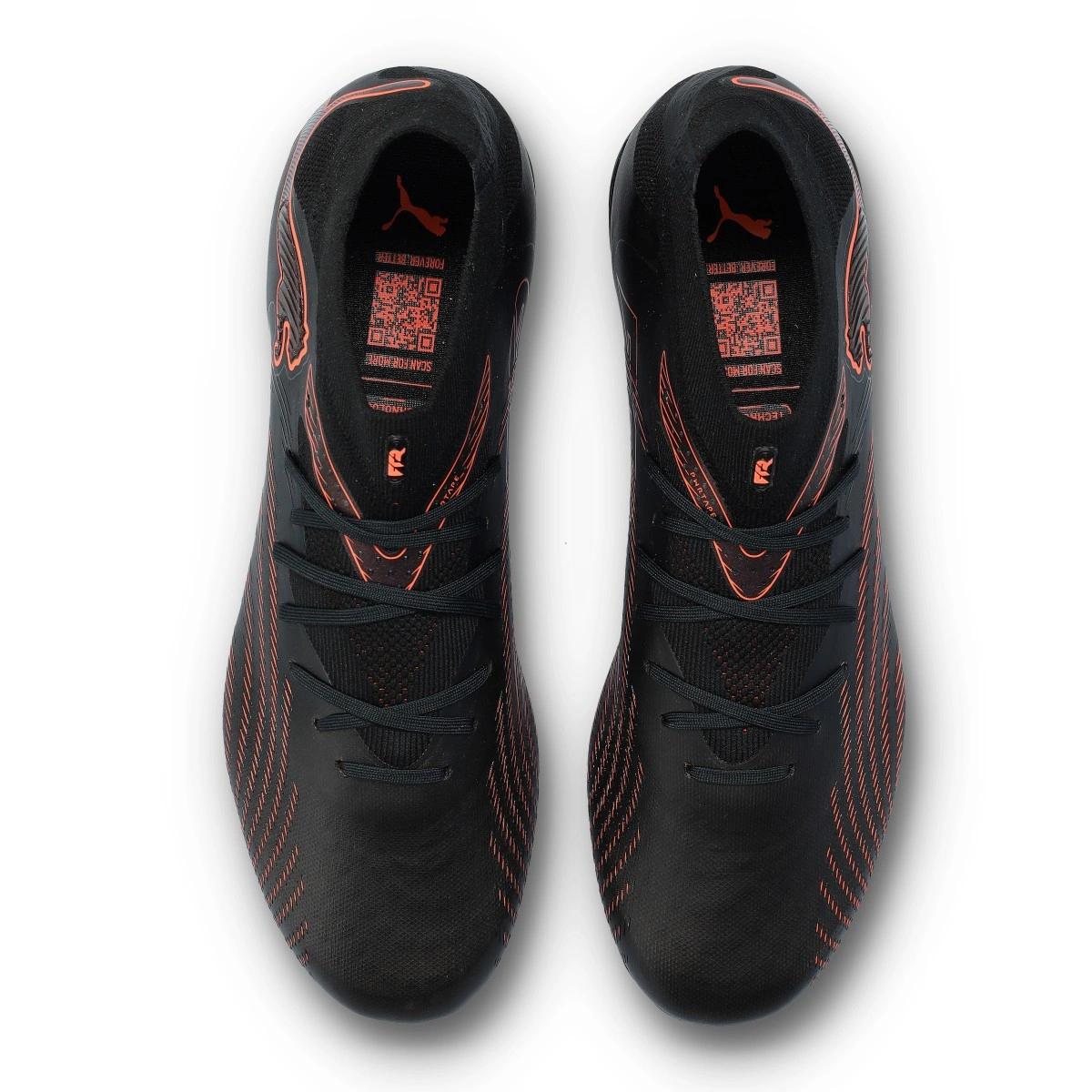 Puma Future 9 Pro Fußballschuhe FG/AG. Synthetische Fußballschuhe, für Naturrasen- und Kunstrasenplätze. Für Offensivspieler in der Farbe Puma Black-Glowing Red-Strong Gray.