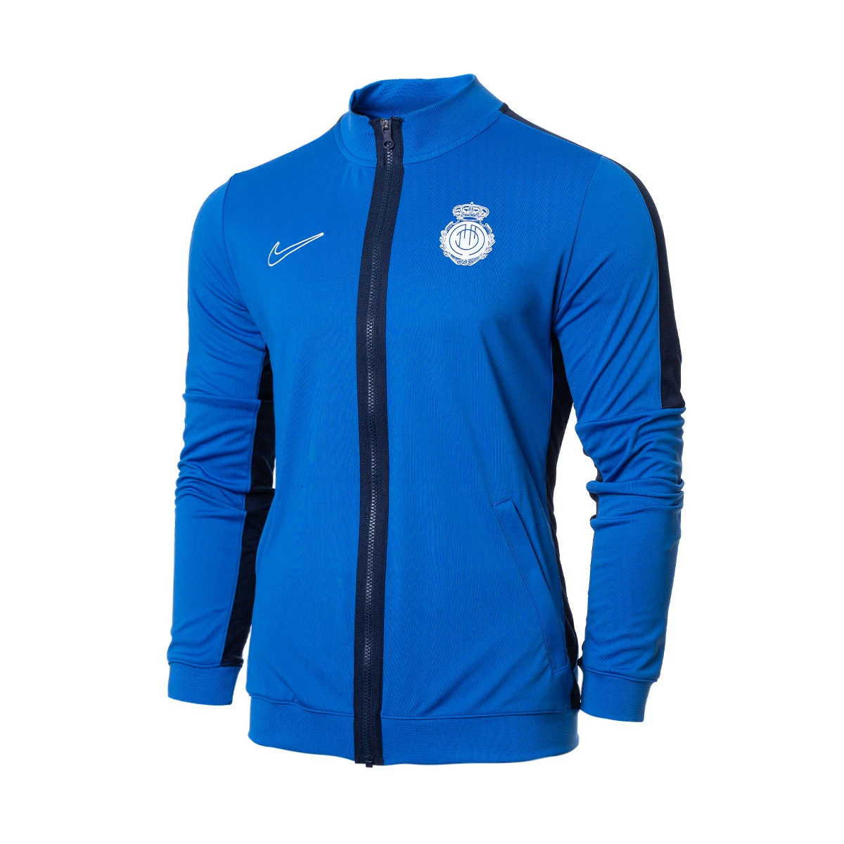 Diese Mallorca Nike Dri-FIT Akademie Sportjacke in Mediterranem Blau kombiniert schweißableitendes Material mit Mesh-Einsätzen, um dich beim Training oder bei der Vorbereitung auf das Spiel angenehm zu halten und Feuchtigkeit abzuleiten. Die Nike Dri-FIT-Technologie leitet Schweiß von der Haut ab, um Atmungsaktivität und Komfort zu erhalten.