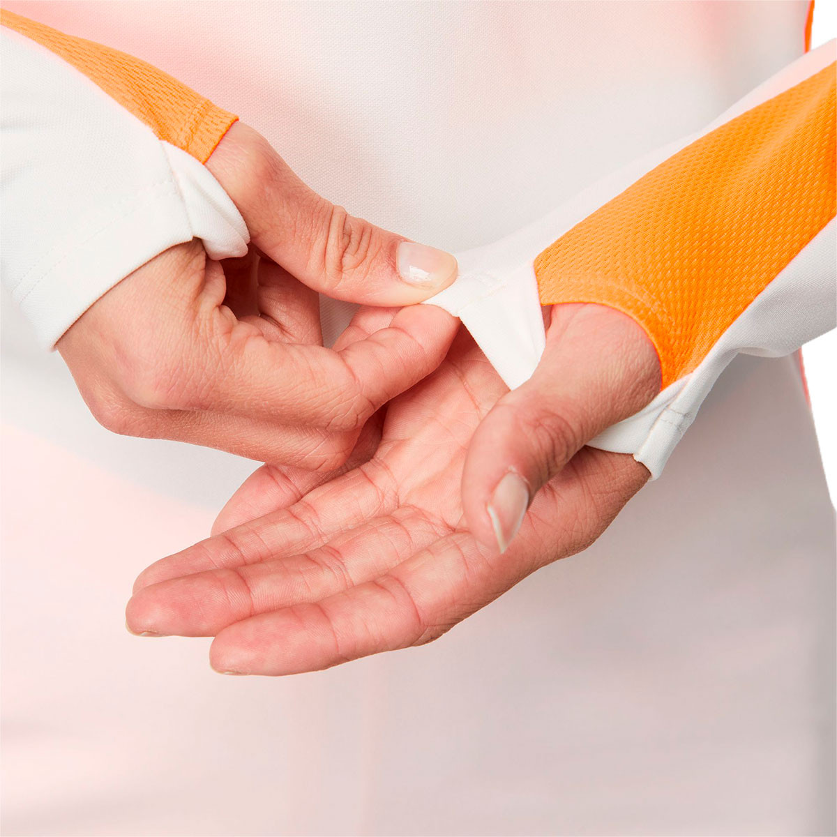 Daumenlöcher bieten zusätzlichen Schutz und halten die Ärmel bei Bewegungen an Ort und Stelle.