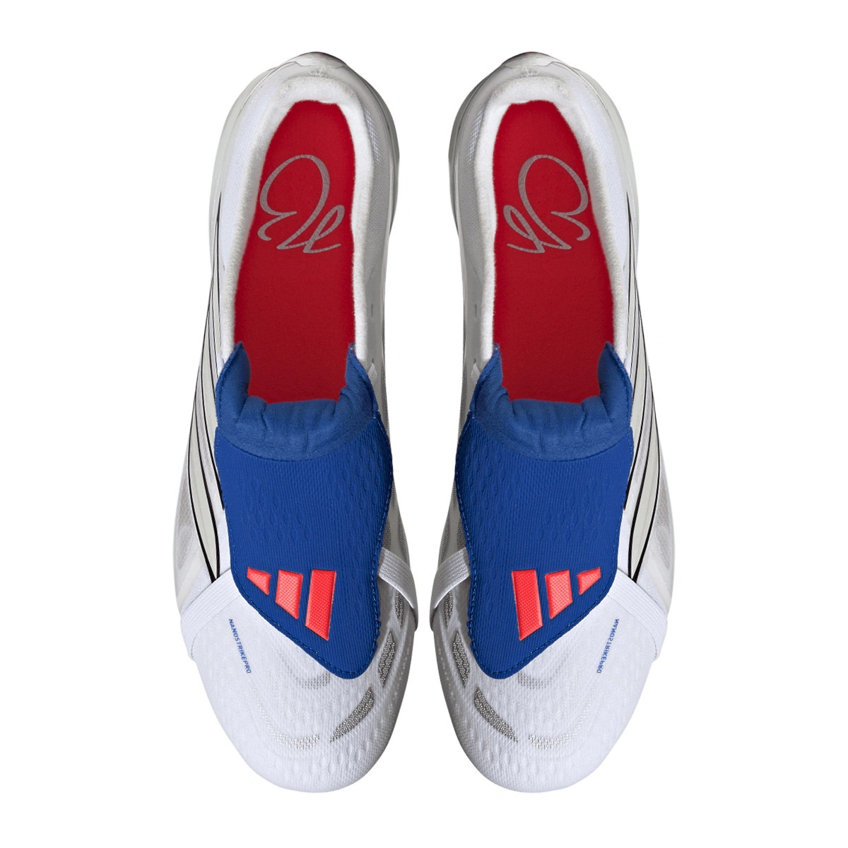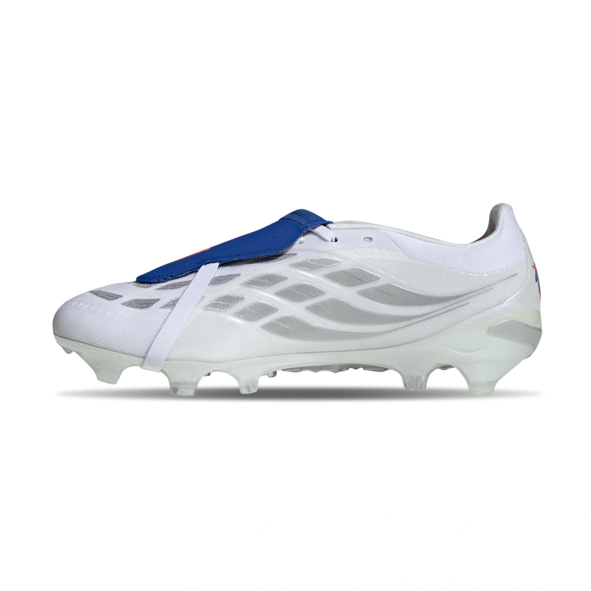 adidas Predator Pro FT FG Jude Bellingham Football Boot in White-Zero Met-Team Royal Blue. Mid-range boot for natural grass pitches.