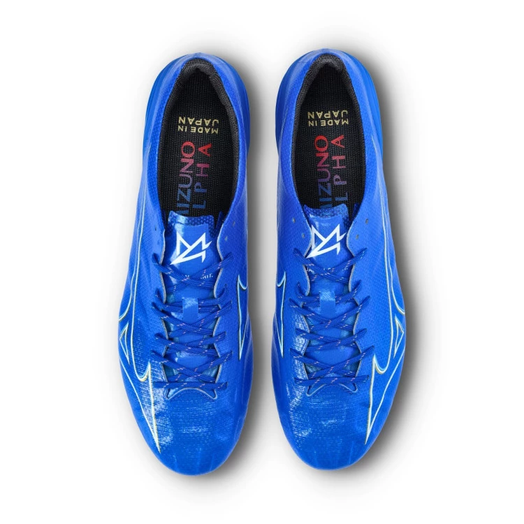 Mizuno Alpha Japan FG football boots. Synthetic boots with laces to be used on natural grass fields. Premium boots in Blue.