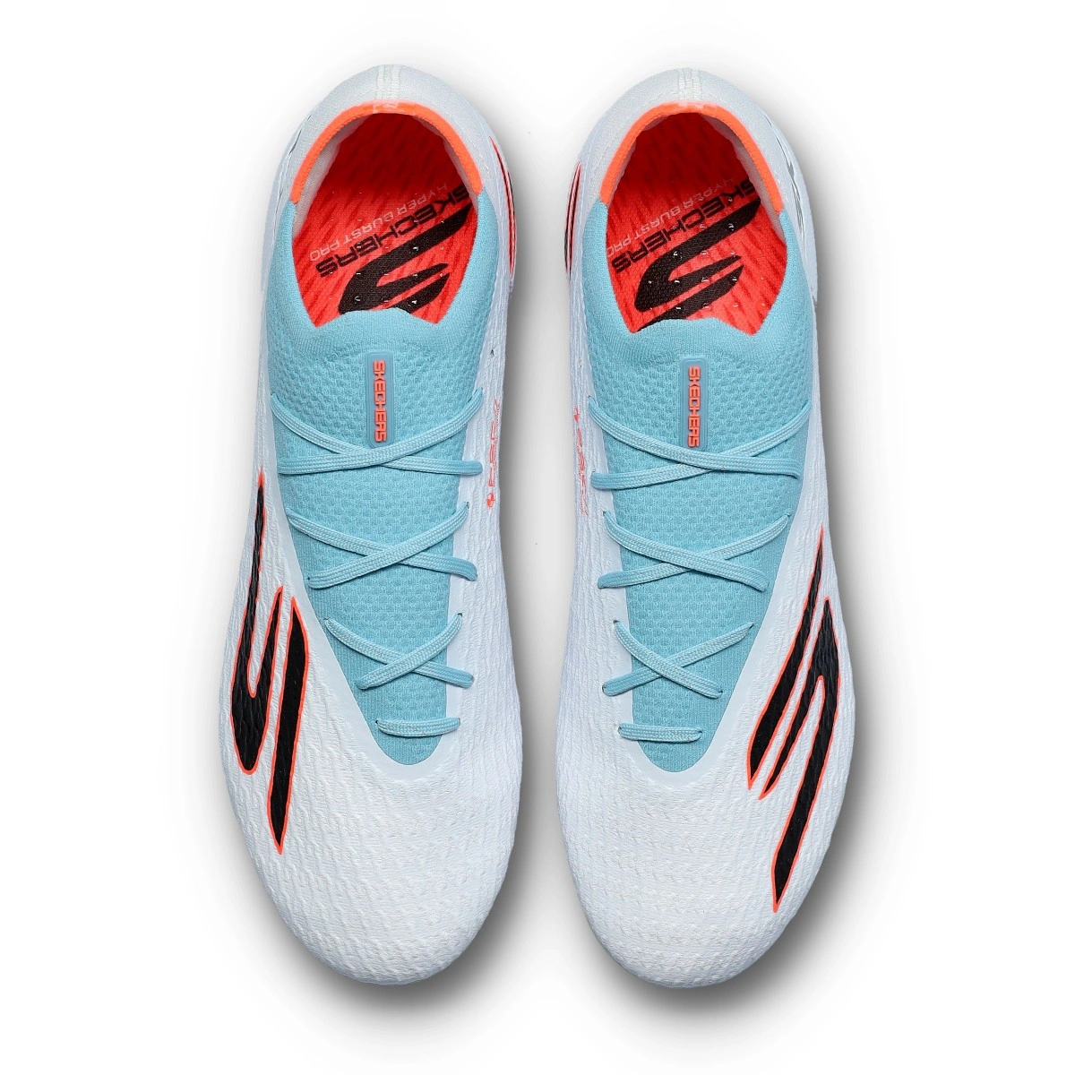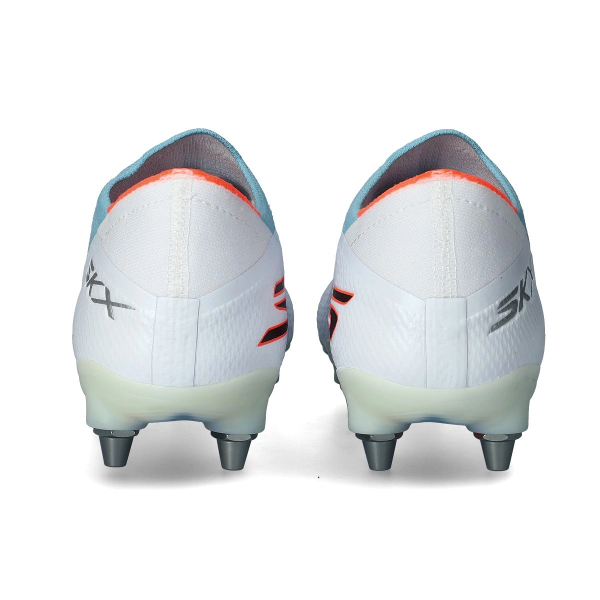 Skechers SKX_02 Elite SG boot in White-Turquoise. Synthetic boot for wet natural grass fields.