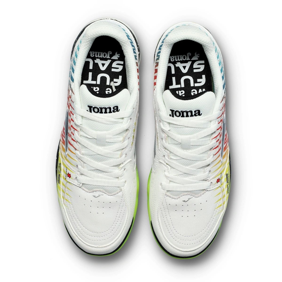Joma FS Reactive IN futsal shoes. White leather shoes recommended for indoor futsal courts.