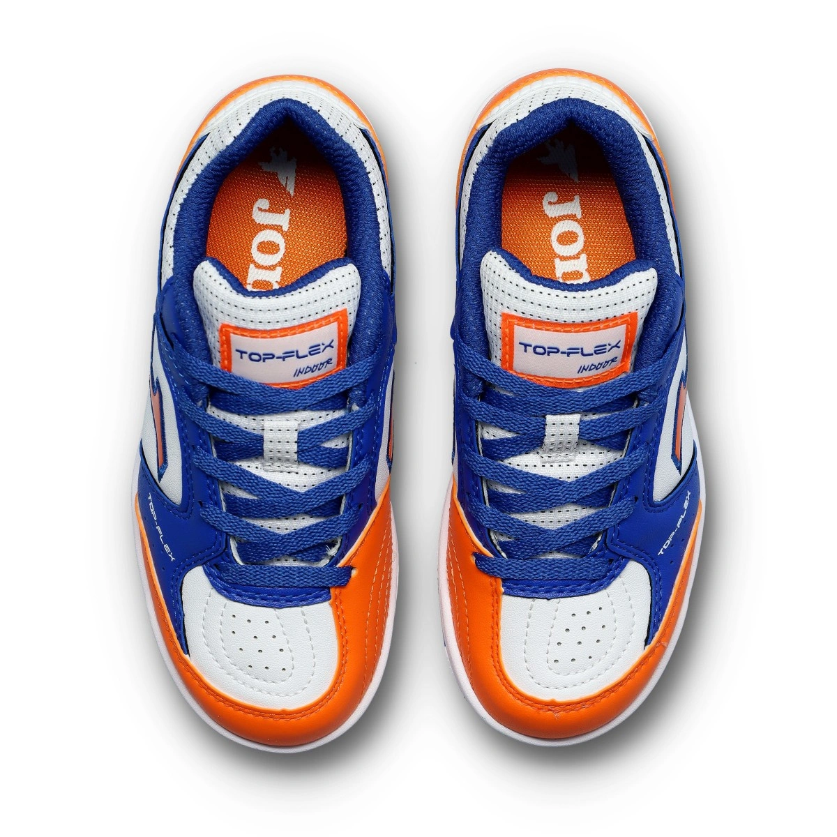 Kids' Joma Top Flex futsal shoes. This is the most emblematic shoe in the Joma futsal catalogue. A lightweight and versatile model, suitable for both training and competition. Tested by professional football players.