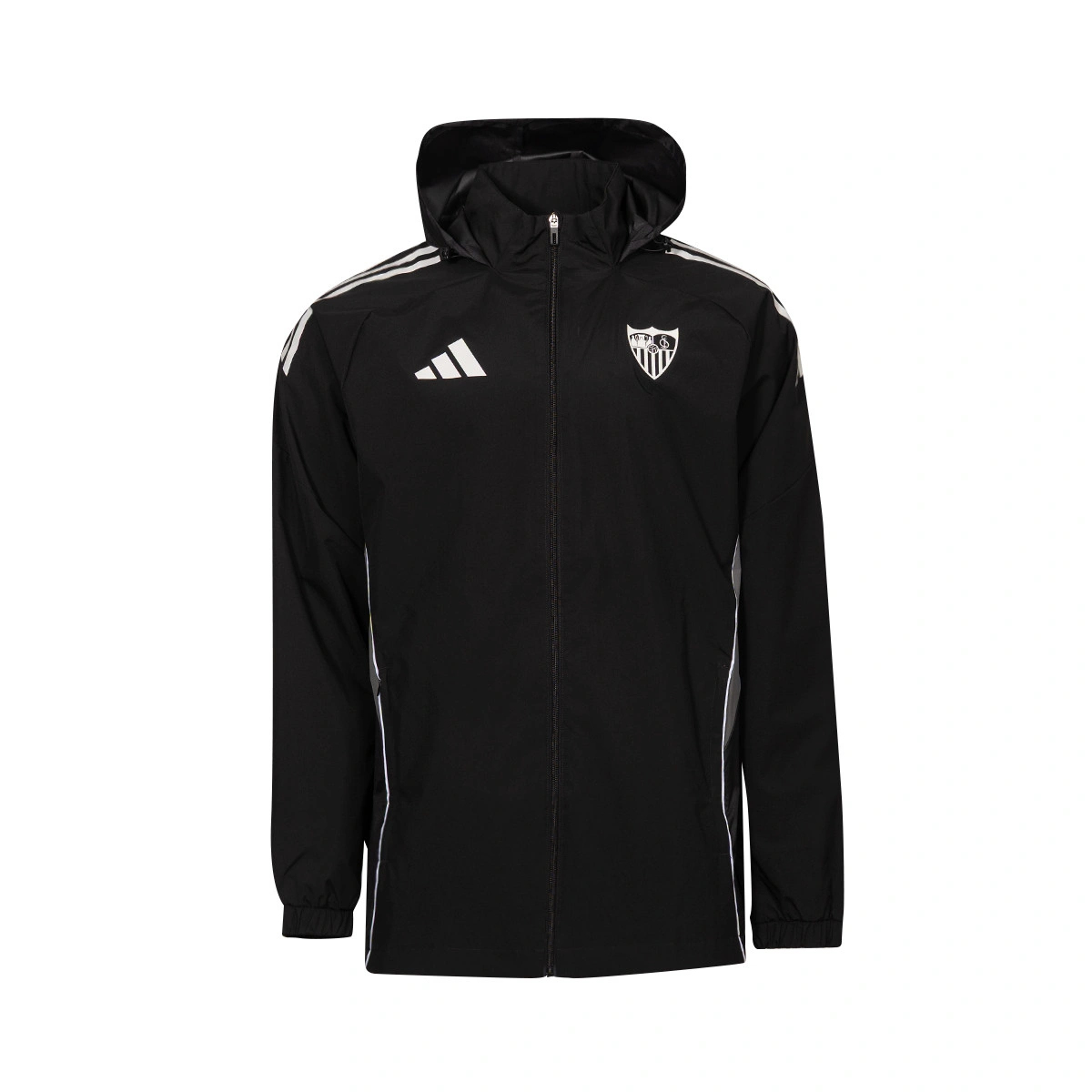 Get ready to train like a true champion with the adidas Sevilla FC Training 2025-2026 Rain Jacket. Designed especially for Sevilla FC fans, this jacket not only protects you from the rain with its waterproof material, but also offers exceptional breathability to keep you cool and dry during the most intense training sessions.