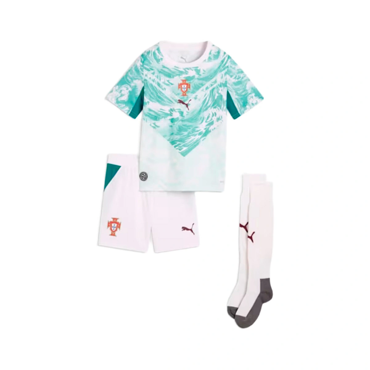 This mini kit is the perfect way to cheer on Portugal at the World Cup 2026 and makes kids feel part of the team. A scaled-down version of Portugal's away kit, including a shirt and matching shorts with the team's colours and details. Moisture-wicking dryCELL technology keeps kids comfortable on and off the pitch.