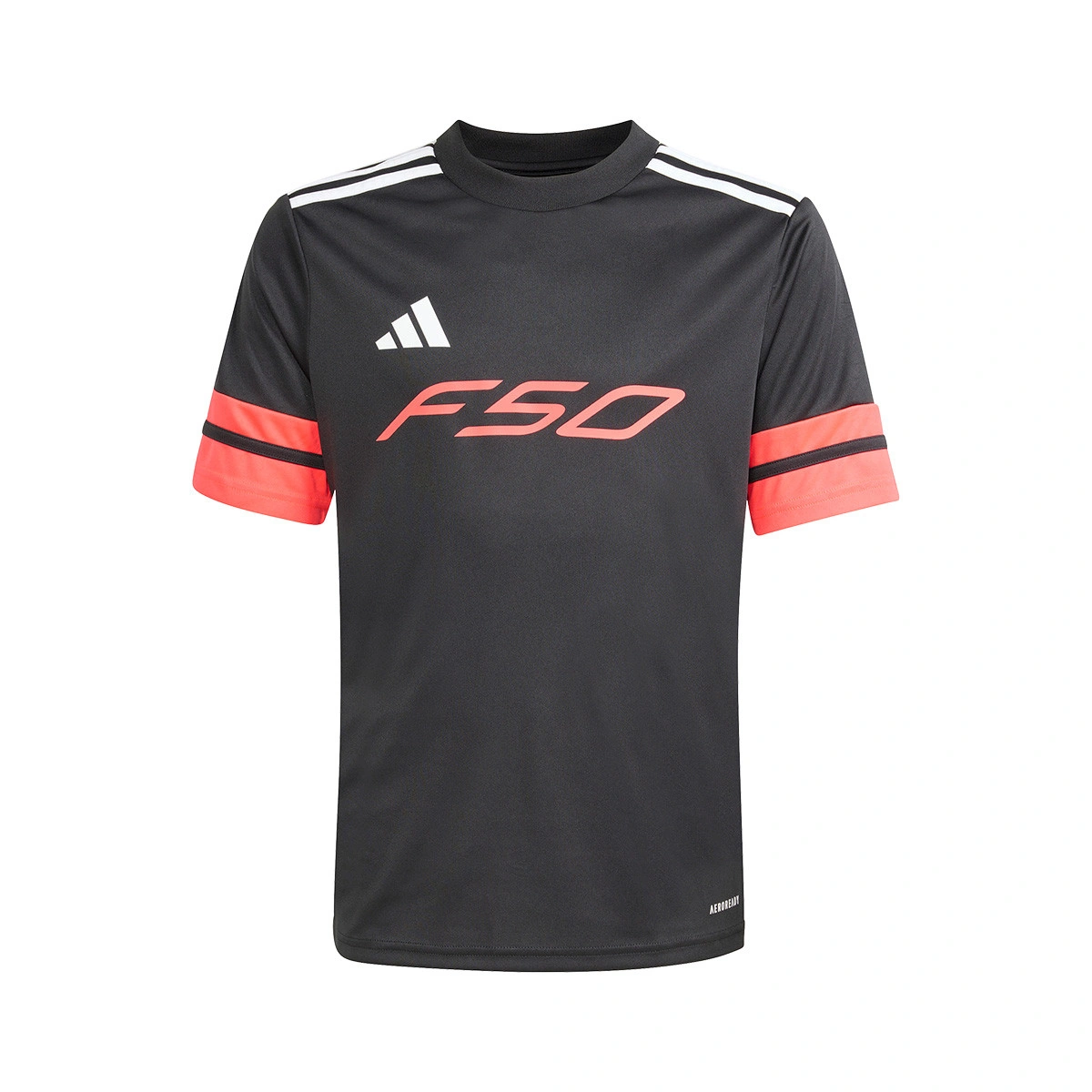adidas AEROREADY technology keeps young athletes comfortable by helping to manage sweat, ensuring kids stay focused on the game. The interlock fabric provides durability and a soft touch, excellent for active play. With a nod to the identity design of football locker rooms, the F50 print will complement their favorite F50 football boots and add a touch of style to every match.