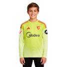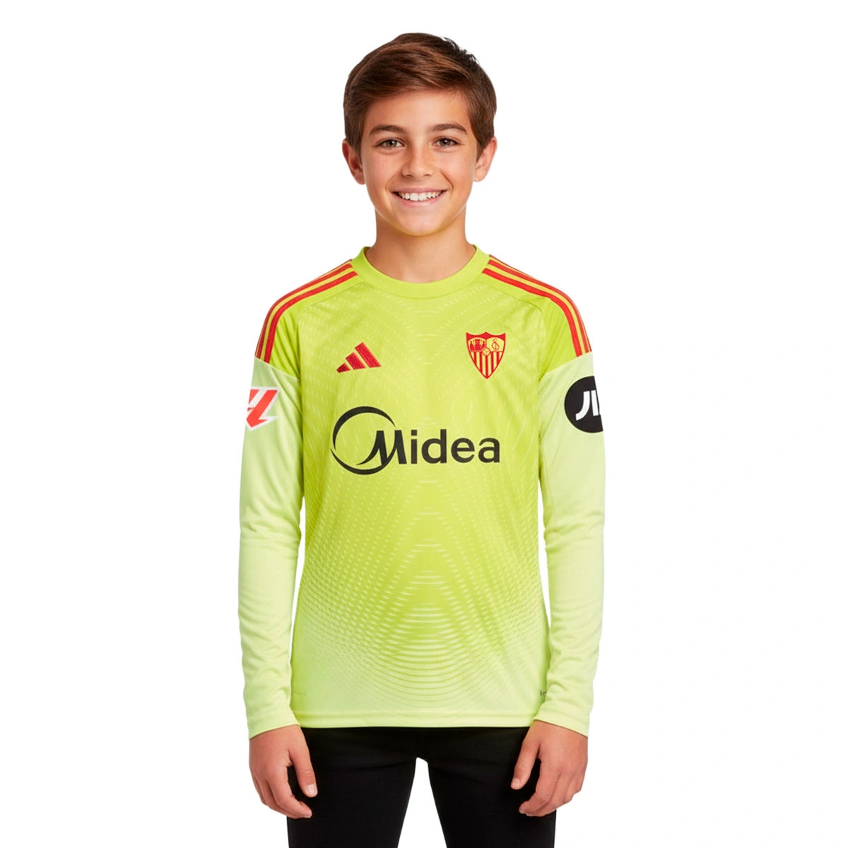 Give your little goalkeeper the jersey that makes them stand out on the pitch! The Sevilla FC Home Kit Goalkeeper Jersey for kids, designed by adidas, is the perfect example of style and functionality.