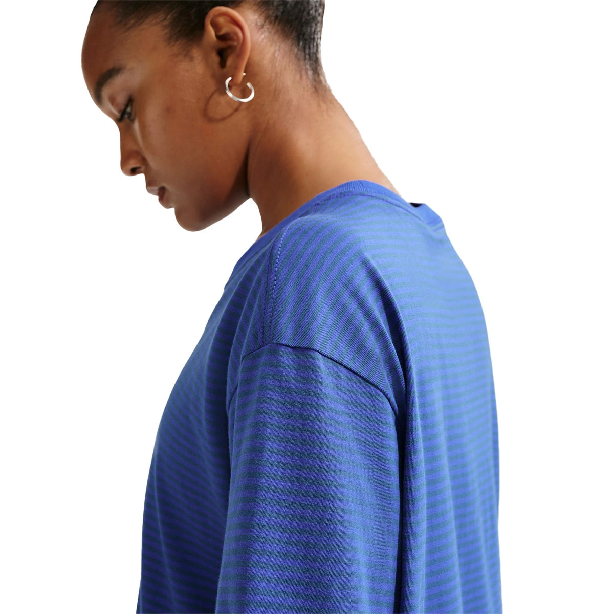The Sportswear Stripe T-shirt for women by Nike looks great. Its extra-wide cut and dropped shoulders give it a modern look, while the mid-weight cotton feels soft and structured.