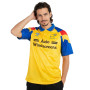 This retro Derby County shirt, designed by Score Draw, is a real gem for the true football fan. It takes you back to the iconic Umbro Away design from 1992, where vibrant yellow intertwines with black detailing, evoking those glory days on the pitch.