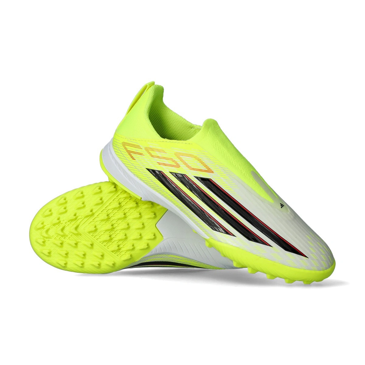 Bota F50 League LL Turf  para niño de la marca adidas en color Team Solar Yellow -Core Black-Lucid Red . Bota de gama base para moqueta y campos de césped artificial.