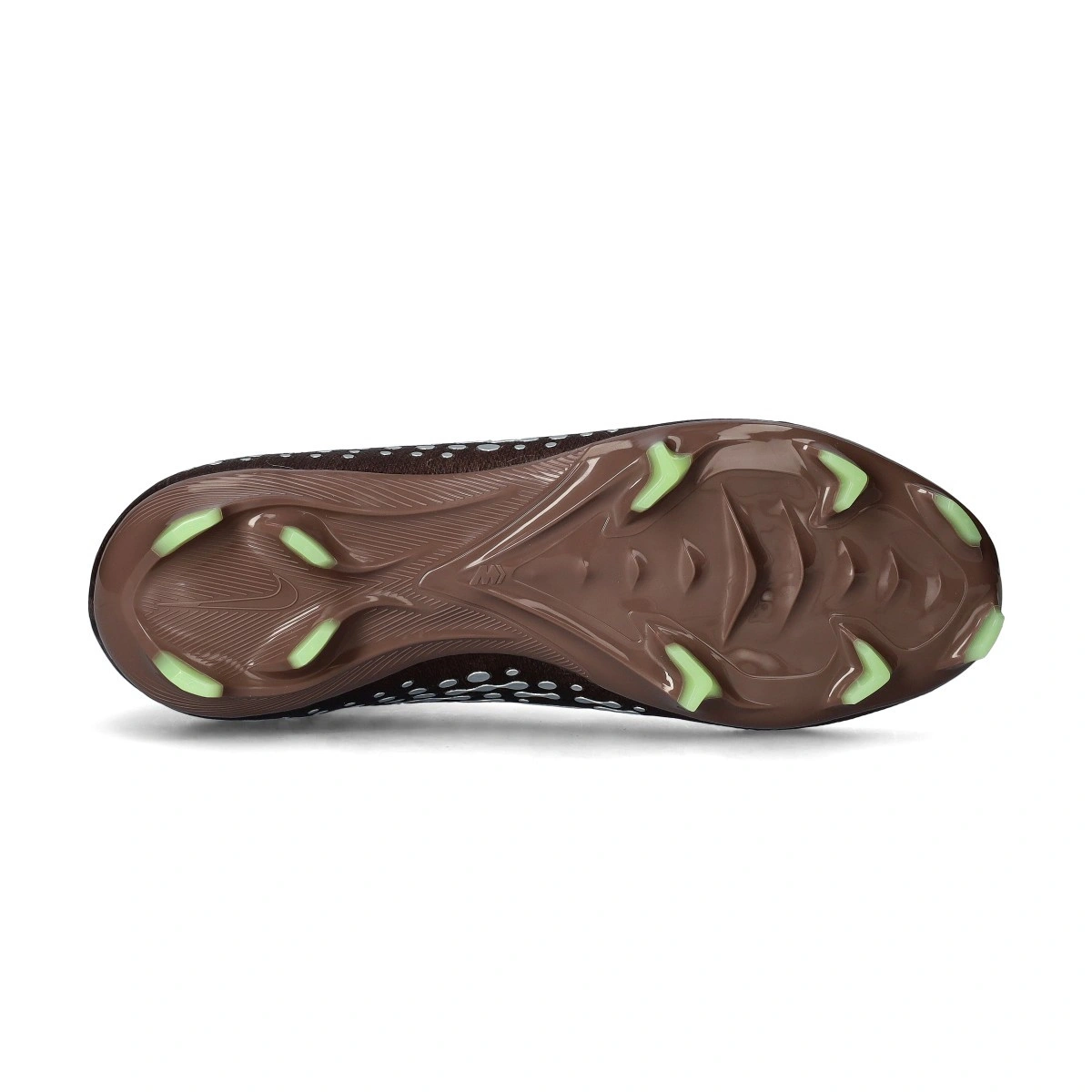 La historia de una estrella se escribe en cada detalle. Este exclusivo pack Mercurial en color marrón para Kylian Mbappé, icono del Real Madrid, rinde homenaje a su legado, su personalidad y su imparable ascenso a la élite. El sofisticado tono marrón representa madurez y liderazgo, mientras que los detalles gráficos repartidos por toda la bota narran el ADN competitivo del delantero francés.