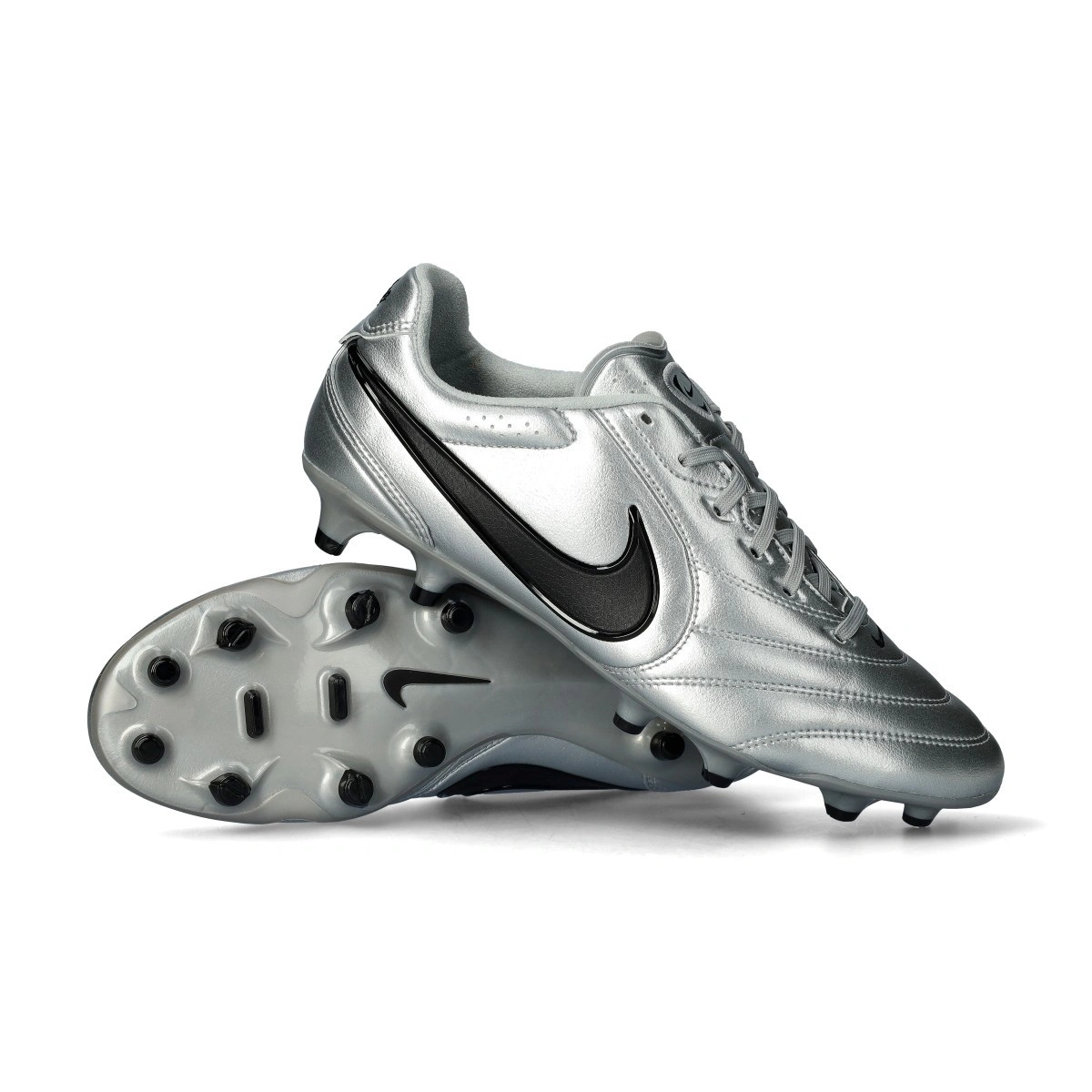 Bota de fútbol Nike Tiempo Ligera Pro FG para adultos. Bota  para utilizarlas en campo de hierba natural. Botas de gama media en color Metallic Silver-Black