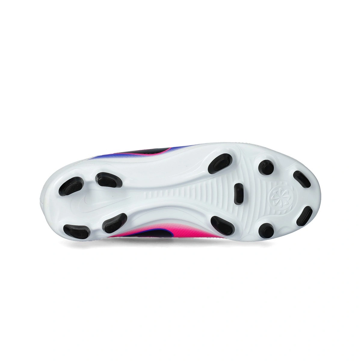 Bota de fútbol Nike Tiempo Maestro Club FG/MG para niño. Botas de piel sintética, para utilizar en campos de hierba natural o artificial. Botas de gama base en color White-Black-Racer Blue-Pink Blast.