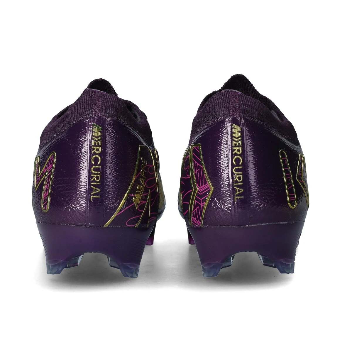 Botas de fútbol Nike Air Zoom Mercurial Vapor 16 Elite KM FG para adultos. Botas de hilo, sin tobillera, para usar en campos de hierba natural. Botas de gama alta para jugadores veloces en color Grand Purple-Pale Ivory.
