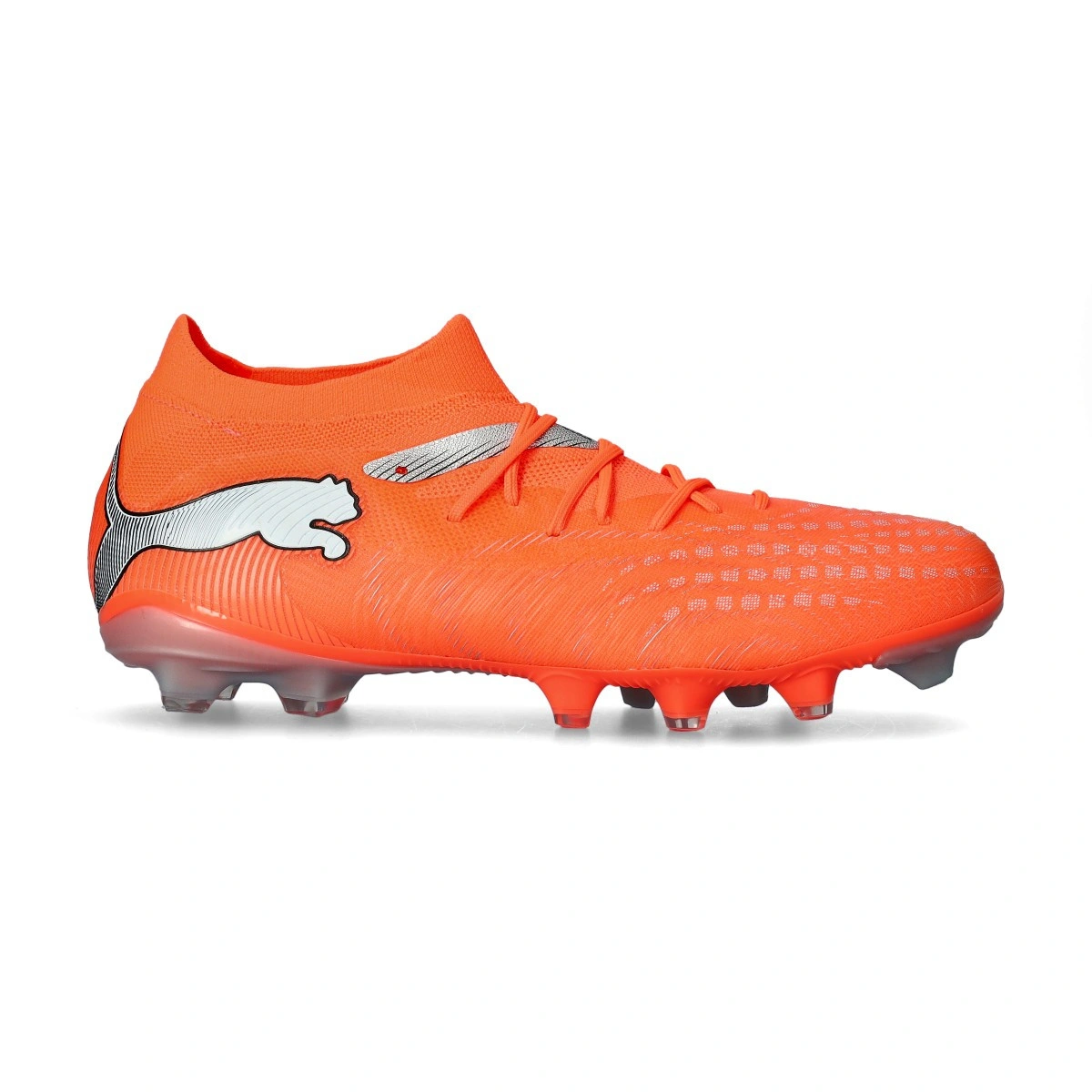 Bota de fútbol Puma Future 9 Match FG/AG para adultos. Botas sintéticas para utilizar en campos de hierba artificial y hierba natural. Botas de gama base en color Puma Red-Puma White-Glowing Red-Puma Black.