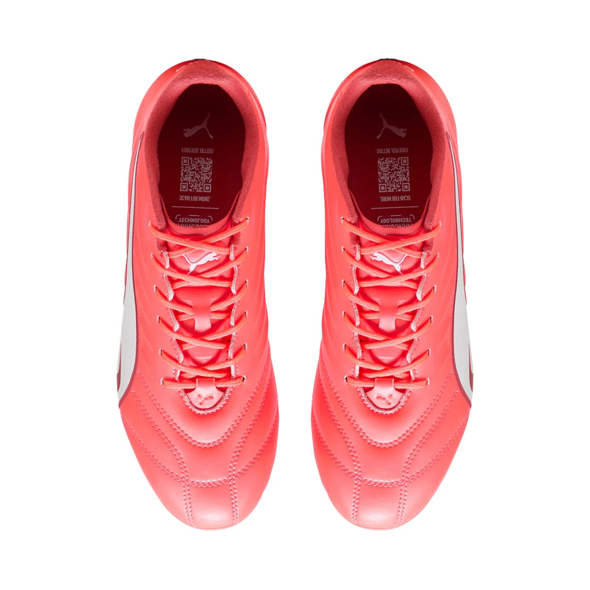 Bota de fútbol Puma King Pro FG/AG para mujer. Botas de fútbol de piel sintética para campos de hierba natural y campos de hierba artificial de última generación. Botas de fútbol de gama media en color Glowing Red-White-Red Fire.
