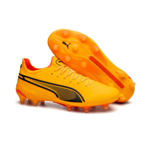 Bota Puma King Ultimate FG/AG para mujer en color Sun Stream-Black-Sunset Glow. Bota de mujer  para jugar en campos de hierba natural y artificial.