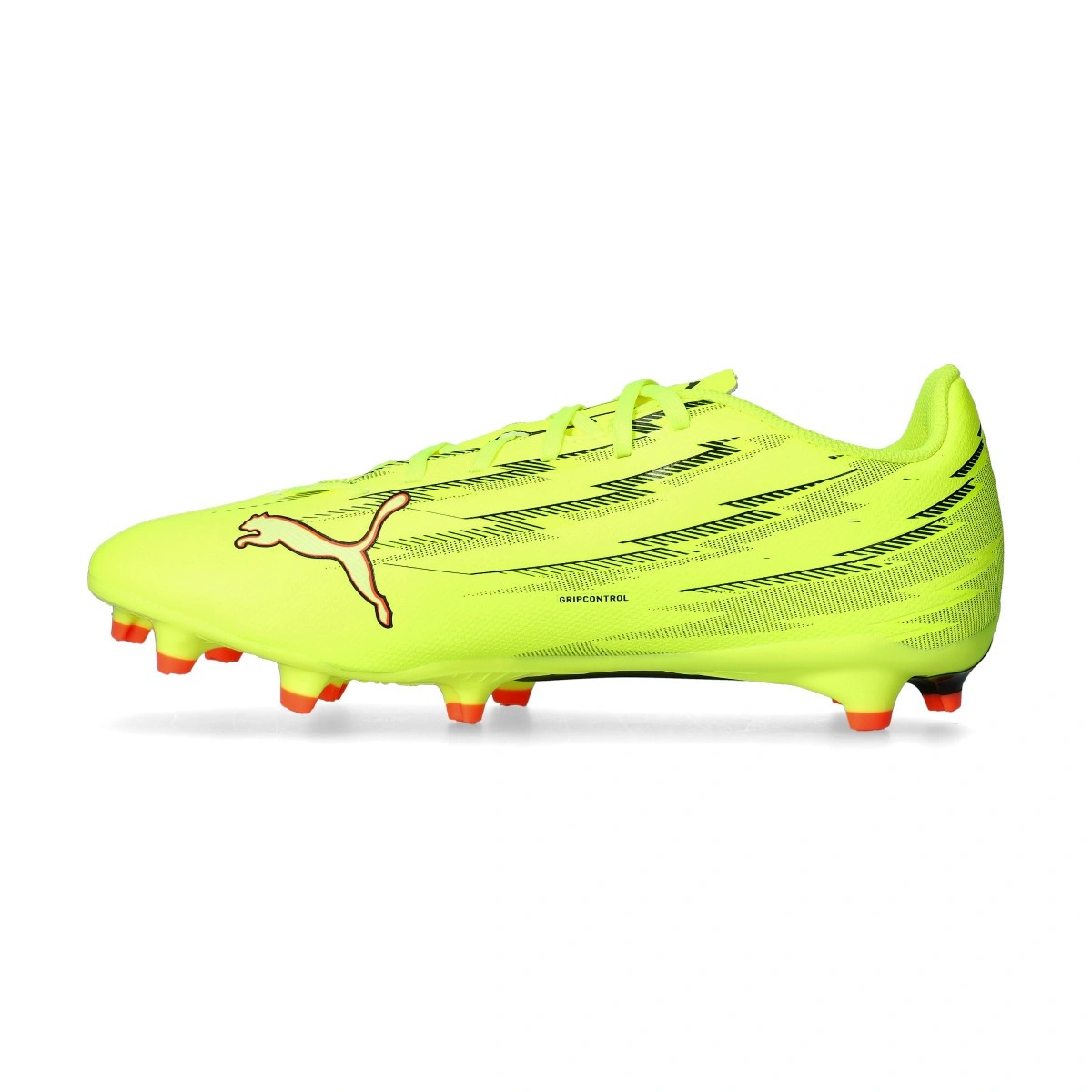 Bota de fútbol Puma Ultra 6 Play FG/AG para adultos. Botas sintéticas para utilizar en campos de hierba artificial y hierba natural. Botas de gama base en color Yellow Alert-Puma Black-Puma Silver-Glowing R.