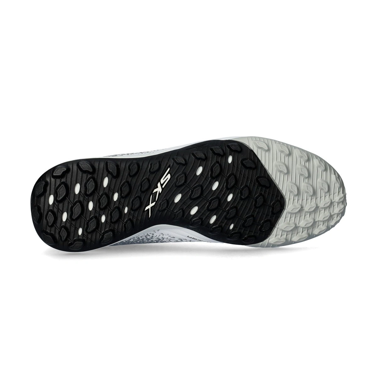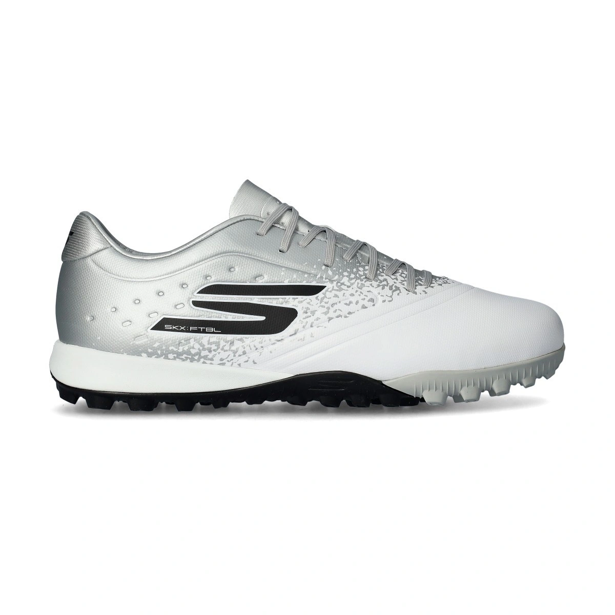 Bota Razor 1.5 Academy Turf de la marca Skechers en color White-Silver para moqueta o campos de césped artificial.
