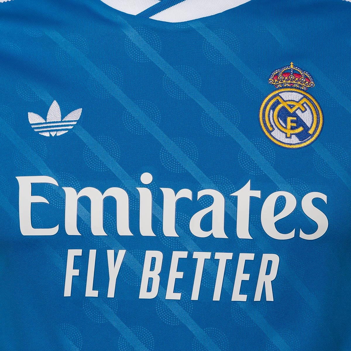 En casa, vestimos de azul. Esta camiseta junior de la tercera equipación del Real Madrid para la temporada 25/26 luce un color muy querido por los madridistas y los fans de las 3 bandas. Esta versión para niños ya viene personalizada con el nombre y el dorsal 10 de Kylian Mbappé, para que los más jóvenes puedan lucir con orgullo los colores y la estrella de su equipo favorito.