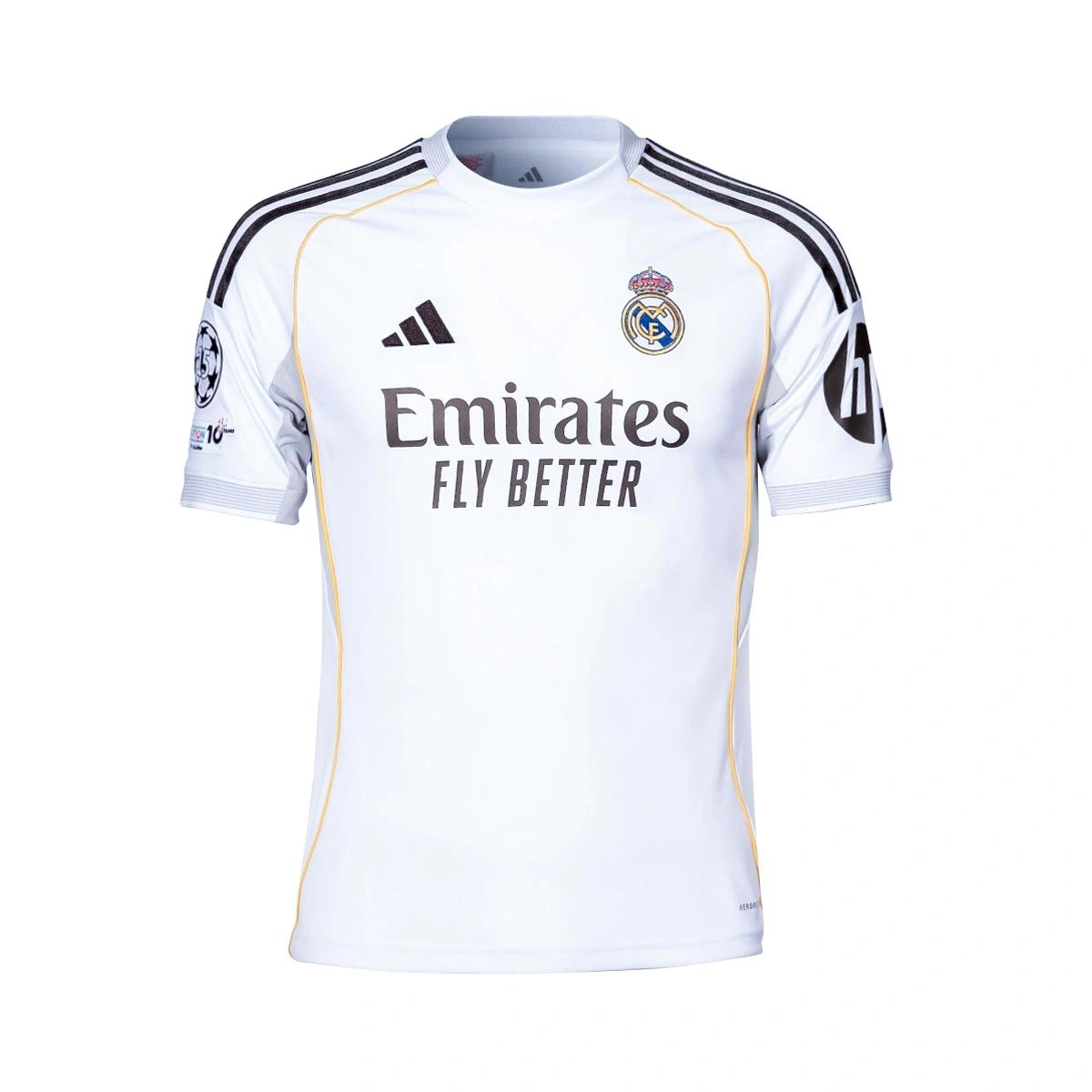 La camiseta para niños serigrafiada de CARVAJAL de la primera equipación del Real Madrid para la temporada 2025-2026 está diseñada por adidas como un homenaje a la grandeza y elegancia del club blanco.