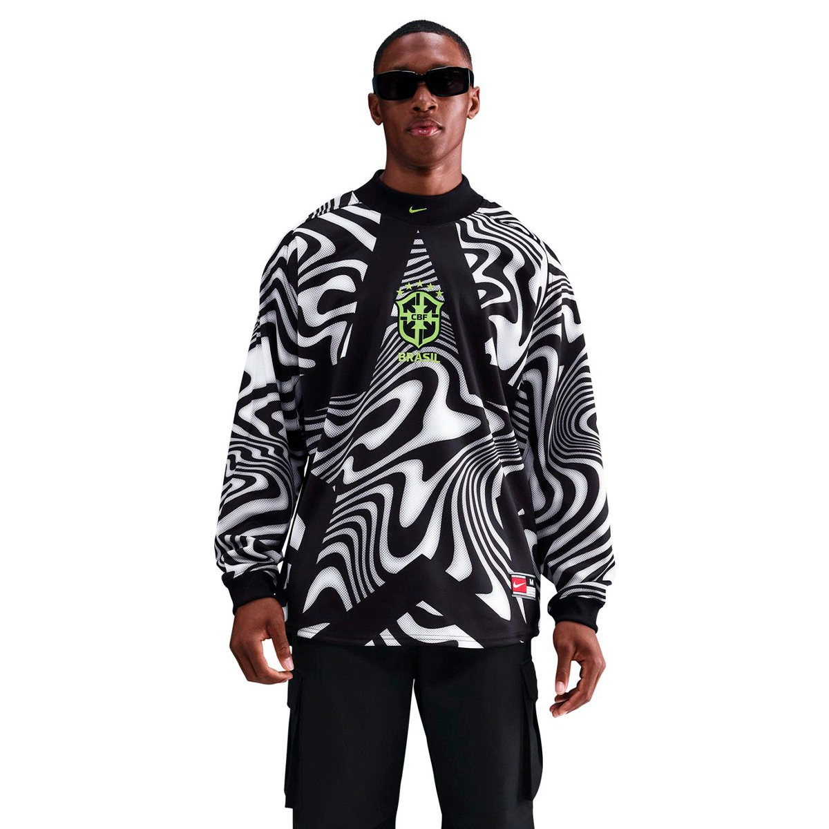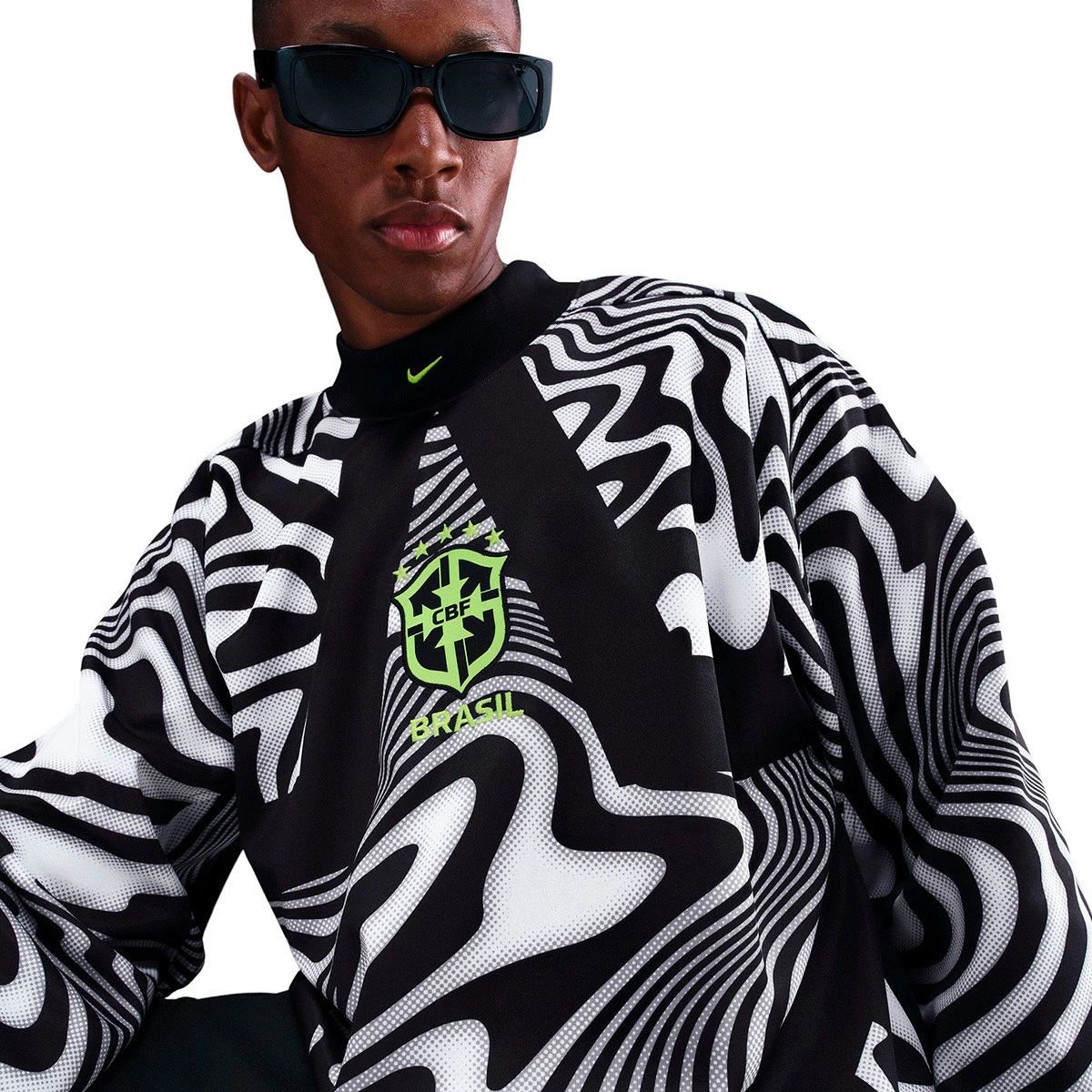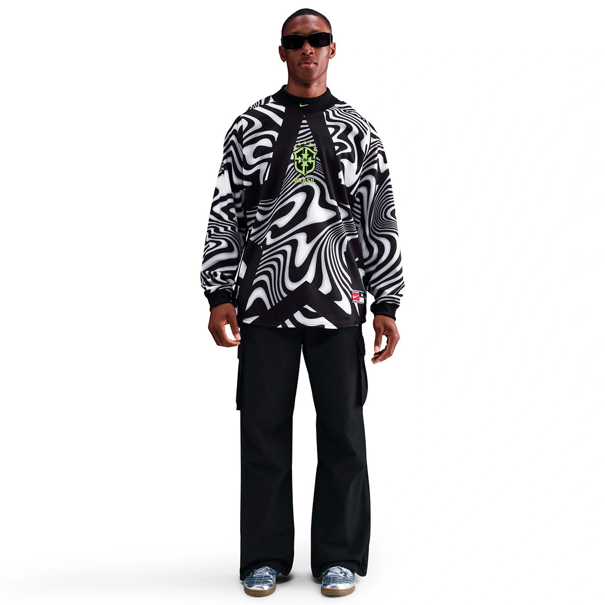 Esta prenda es una auténtica obra maestra que lleva el espíritu del equipo brasileño a un nuevo nivel. Diseñada especialmente para los verdaderos aficionados, luce un diseño de temporada con un patrón hipnótico en blanco y negro que no solo transmite energía sino que también destaca por su originalidad y modernidad.