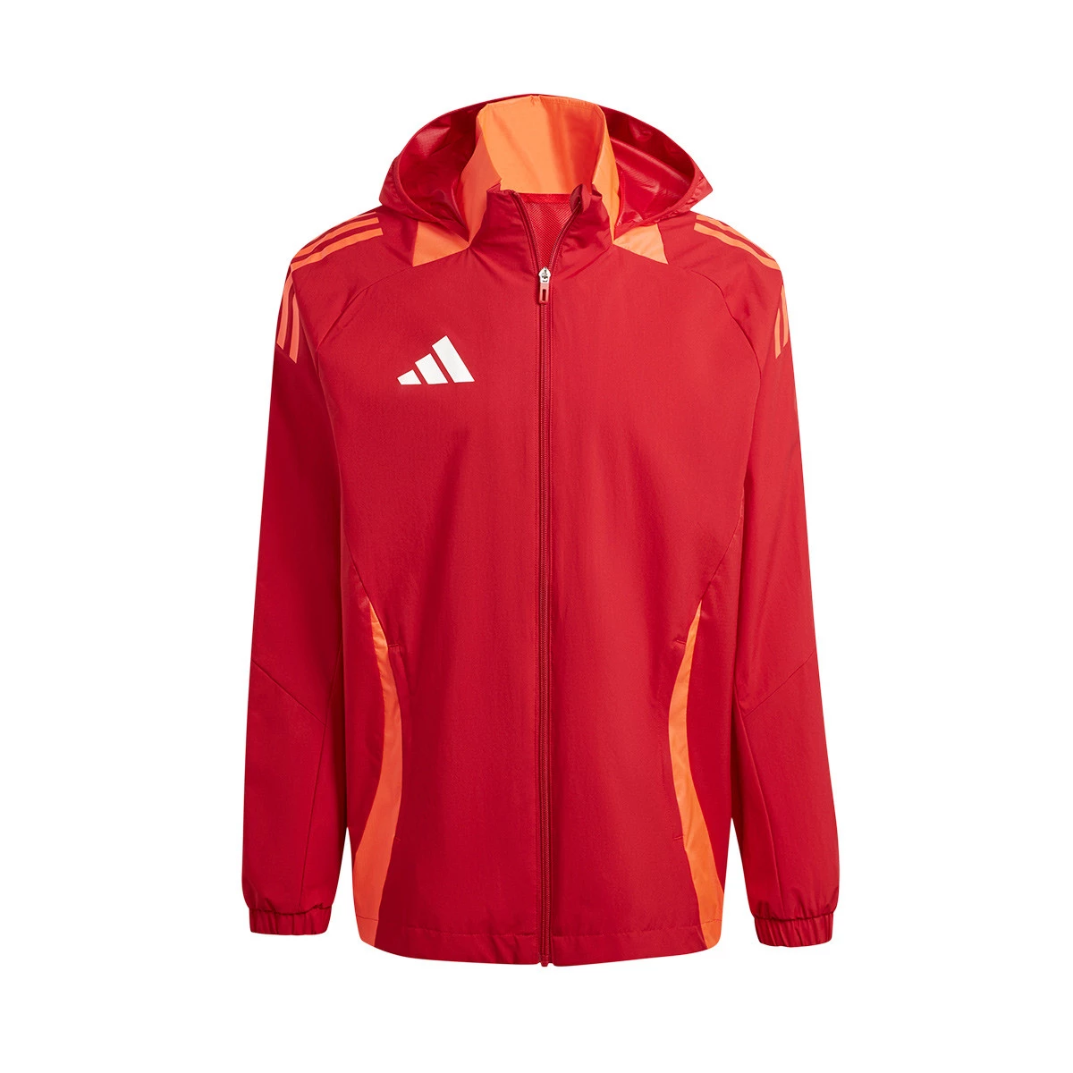 Chaqueta Tiro 24 Competition Pre-match. Deja al mal tiempo fuera de juego con esta chaqueta confeccionada un tejido exterior que repele el agua, ayudándote a mantener la concentración incluso cuando la lluvia amenaza con arruinar la sesión de entrenamiento. Los bolsillos con cremallera te permiten tener a mano todo lo indispensable, mientras que la práctica capucha se puede plegar y guardar según tus necesidades.