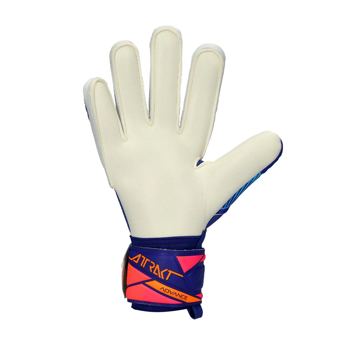 Guantes de portero Attrakt Advance de la marca Reusch. Guantes para adulto en color sharp blue-white-shocking orange montados en corte negativo.