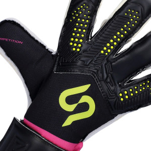 Guantes de portero Pantera Pro para niño de la marca SP en color Black-Pink. Guantes montados en corte rollfinger