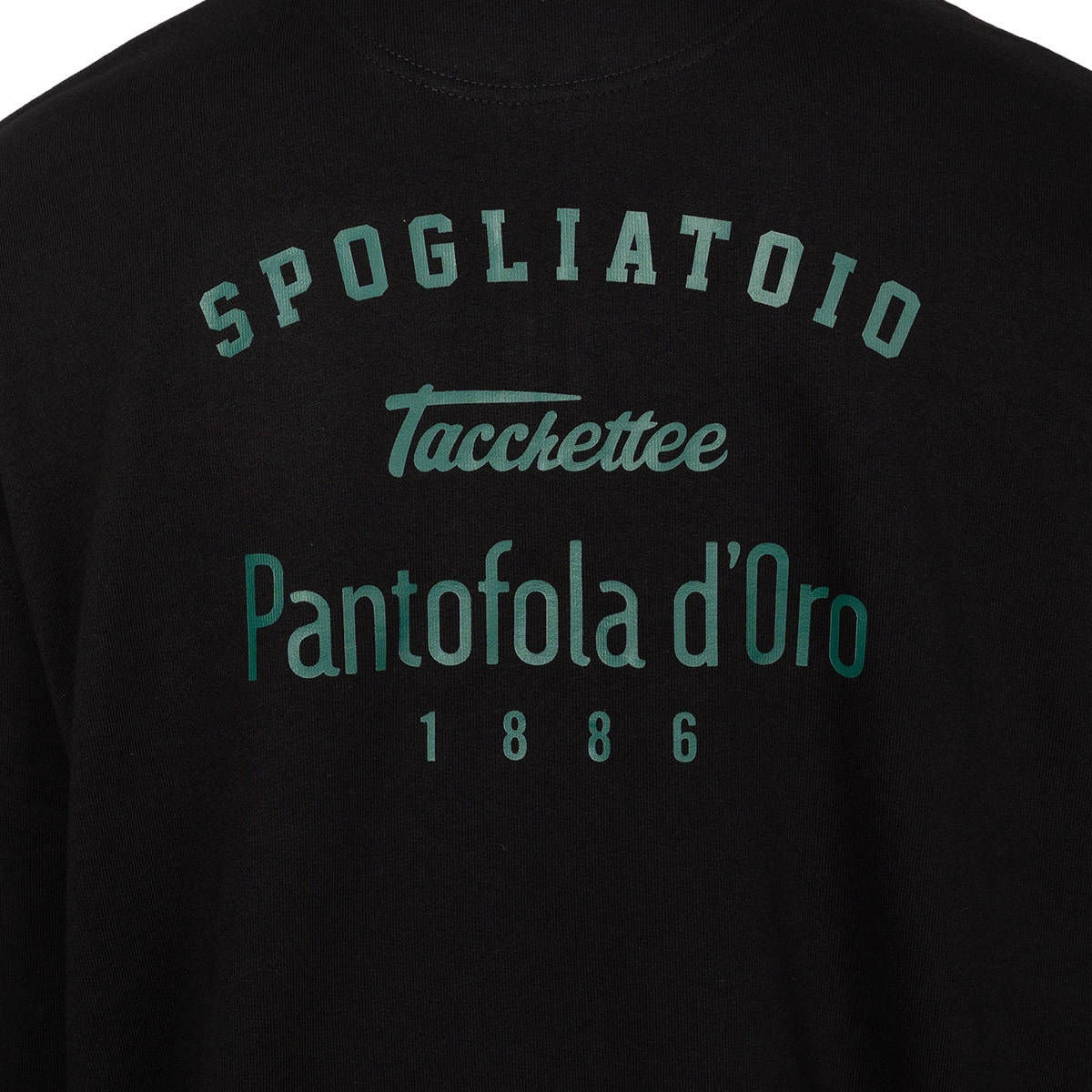 - Logotipo minimalista de Tacchettee x Pantofola d'Oro en el pecho y estampado "Spogliatoio" en la espalda