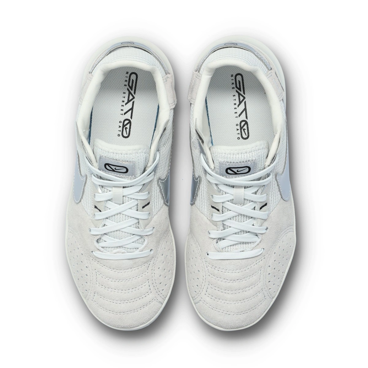 Zapatilla de fútbol sala Nike Street Gato para niño. La suela rediseñada proporciona tracción ininterrumpida para los partidos de fútbol rápido. La gamuza en la parte superior ofrece un estilo para todos los días, ya sea para jugar o para pasar el rato. Incorpora pequeñas inserciones de goma que ofrecen mayor durabilidad.