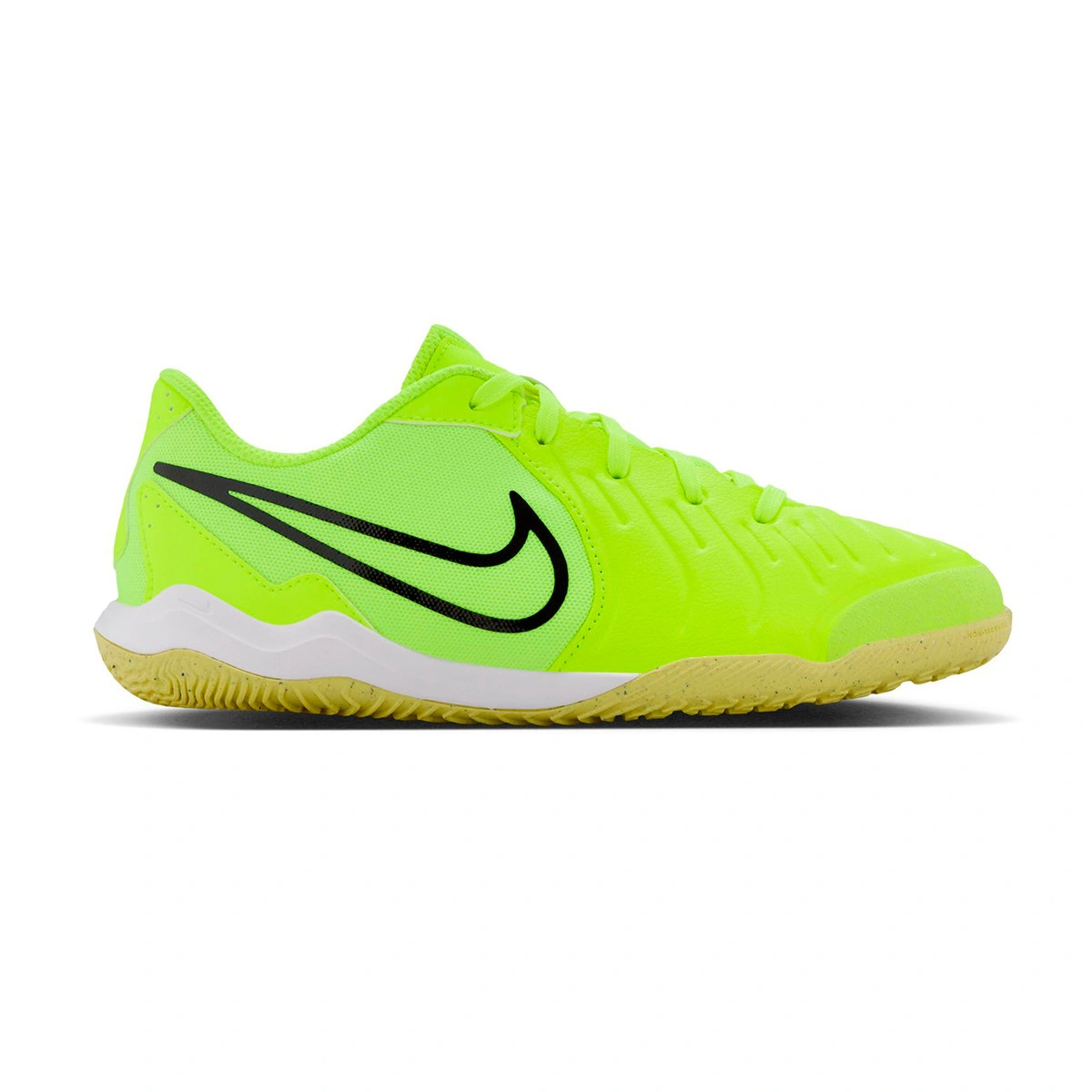 Zapatillas de fútbol sala Nike Tiempo Legend 10 Academy IC para niño. Zapatillas de piel, para utilizar en pistas indoor. Zapatillas de gama pro en color Volt-Black.