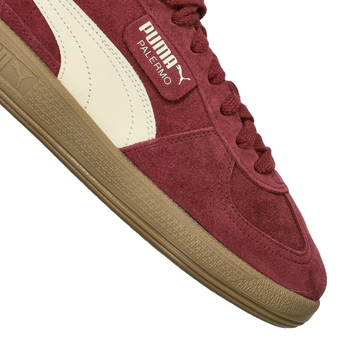 La Palermo, fraîchement sortie des archives PUMA. Ce modèle classique, que l'on voit souvent dans les tribunes des stades, présente un design qui s'appuie sur l'héritage du football tout en séduisant les sneakerheads et les fashionistas d'aujourd'hui. Cette version a une base en cuir avec des bandes de forme et des empiècements en daim.