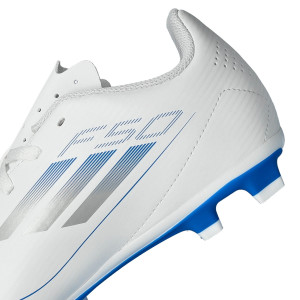 Chaussures F50 Club FG/MG de la marque adidas pour les enfants en White-Silver Met-Ftwr White. Chaussure de la gamme de base.