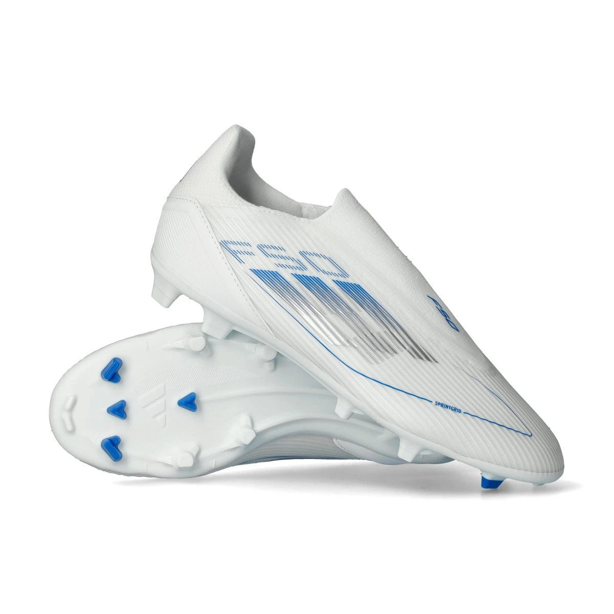 Chaussures adidas F50 League LL FG/MG en White-Silver Met-Ftwr White. Chaussure de base pour les terrains en gazon naturel et artificiel.