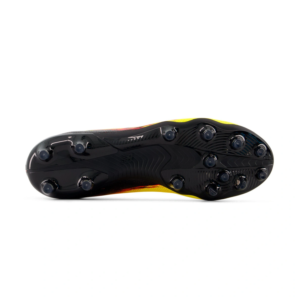 Chaussures de football New Balance Furon Pro MG V8 pour adulte en couleur Punch-Yellow. Chaussures synthétiques avec lacets pour terrains en gazon artificiel de deuxième génération.