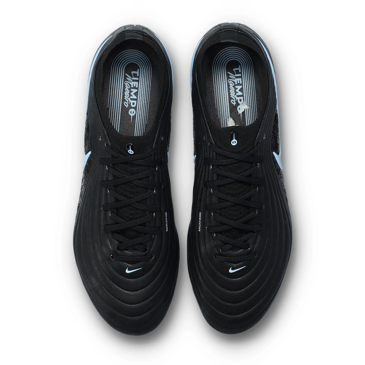 Chaussure de football Nike Tiempo Maestro Elite FG pour adultes. Chaussure pour terrains en gazon naturel. Chaussures haut de gamme en couleur Black-Ice Blue.