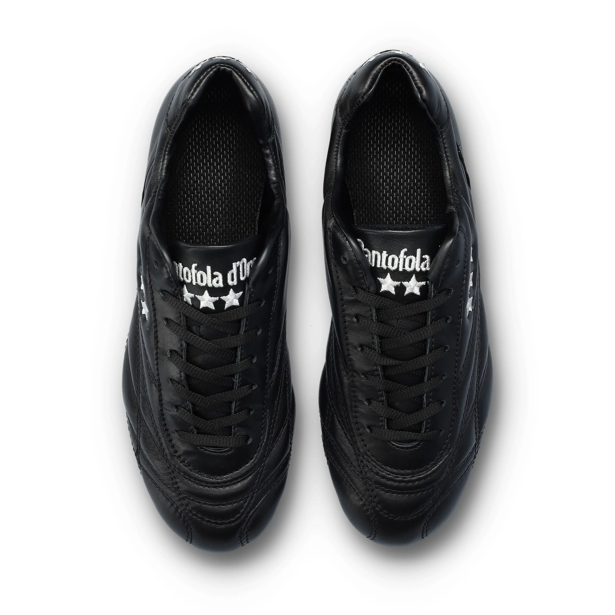 Chaussure de football Pantofola d'Oro New Star FG/MG. Chaussure en cuir pour terrains en gazon naturel et artificiel, de couleur noire.