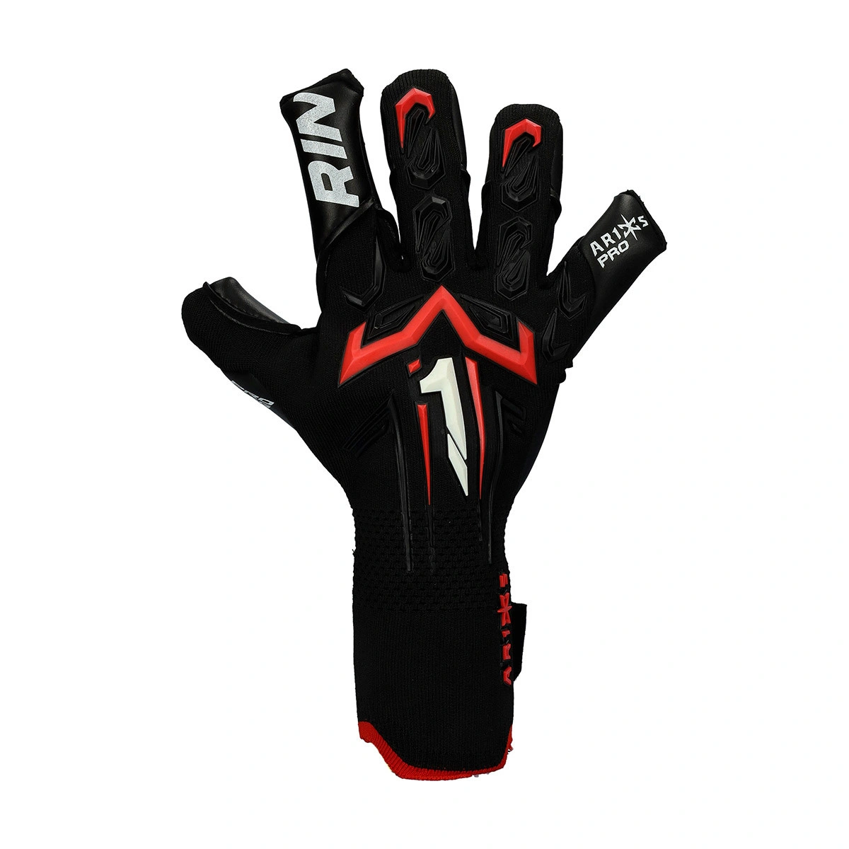 Gants de gardien Aries Pro de la marque Rinat. Gants pour adulte en coloris Black avec coupe rollfinger.