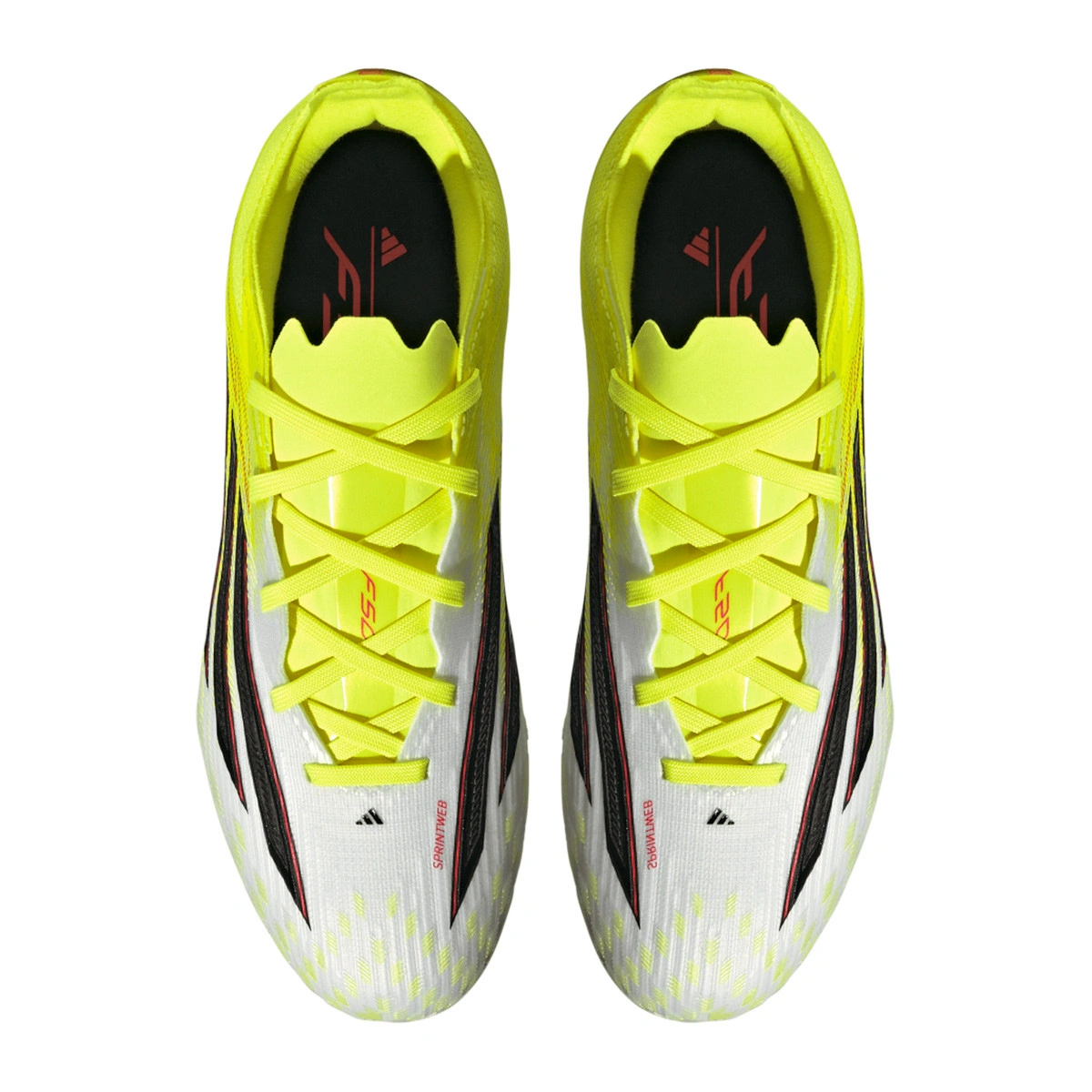 adidas F50 Elite LL FG football boot for boys. Lace-free boots for use on dry or wet natural grass pitches. High-end boots in Team Solar Yellow-Core Black-Lucid Red.