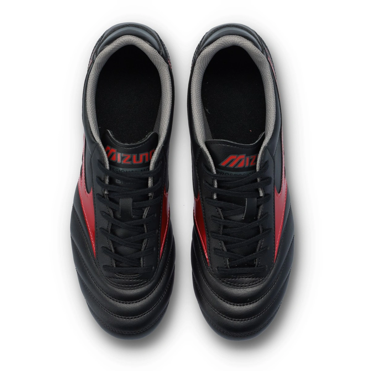 Mizuno Morelia II Club FG football boot. Adult boot in Black-Red-Black from the basic range for natural grass pitches.