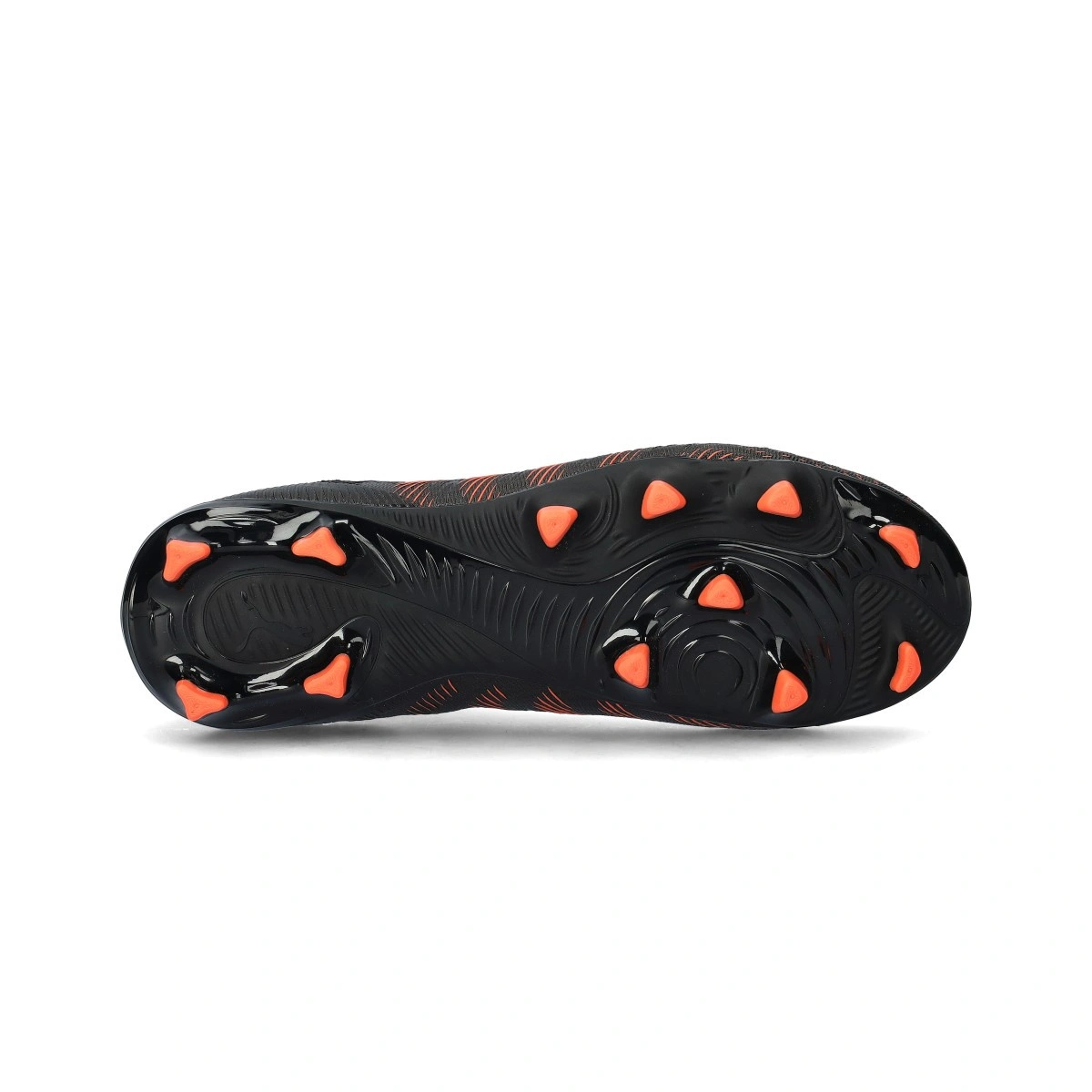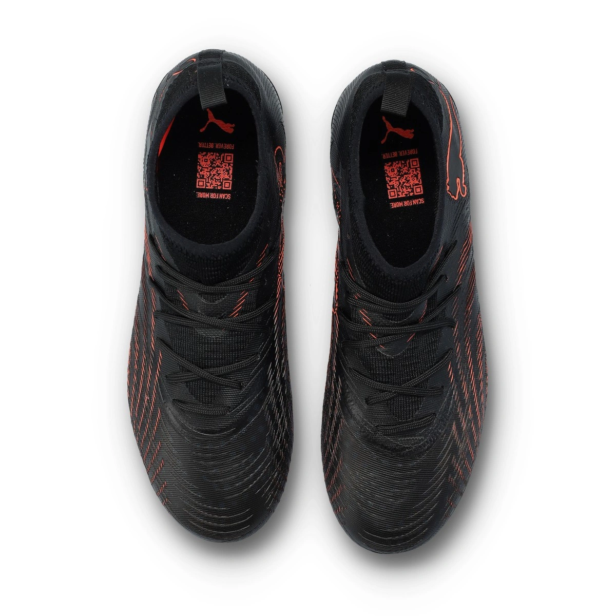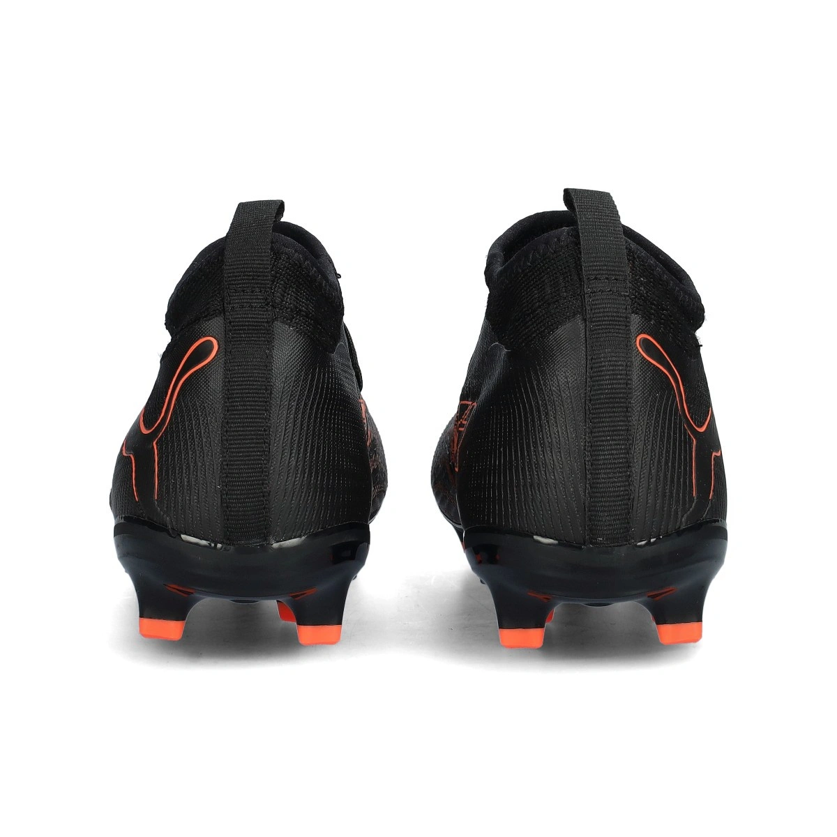 Puma Future Match Football Boots 9 FG/AG for kids. Synthetic boots for use on artificial grass and natural grass pitches. Entry-level boots in Puma Black-Glowing Red-Strong Gray.