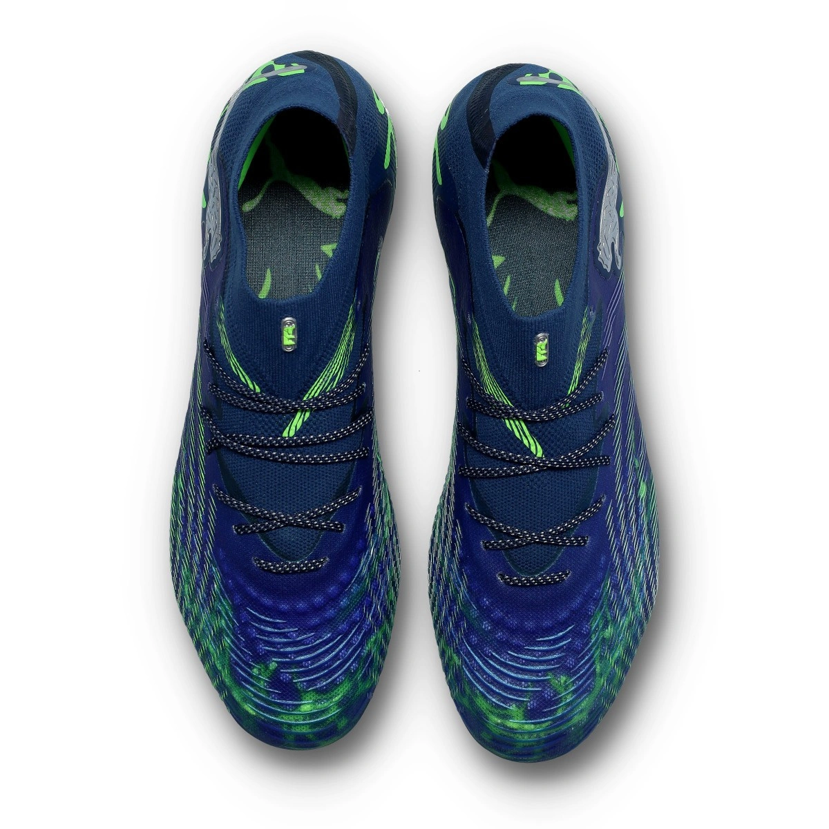 Puma Future 9 Ultimate Football Boots FG. Knitted boots, for use on dry natural grass pitches. Top-range boots in Lapis Lazuli-Bright Aqua-Green Glare-Glowing colour.