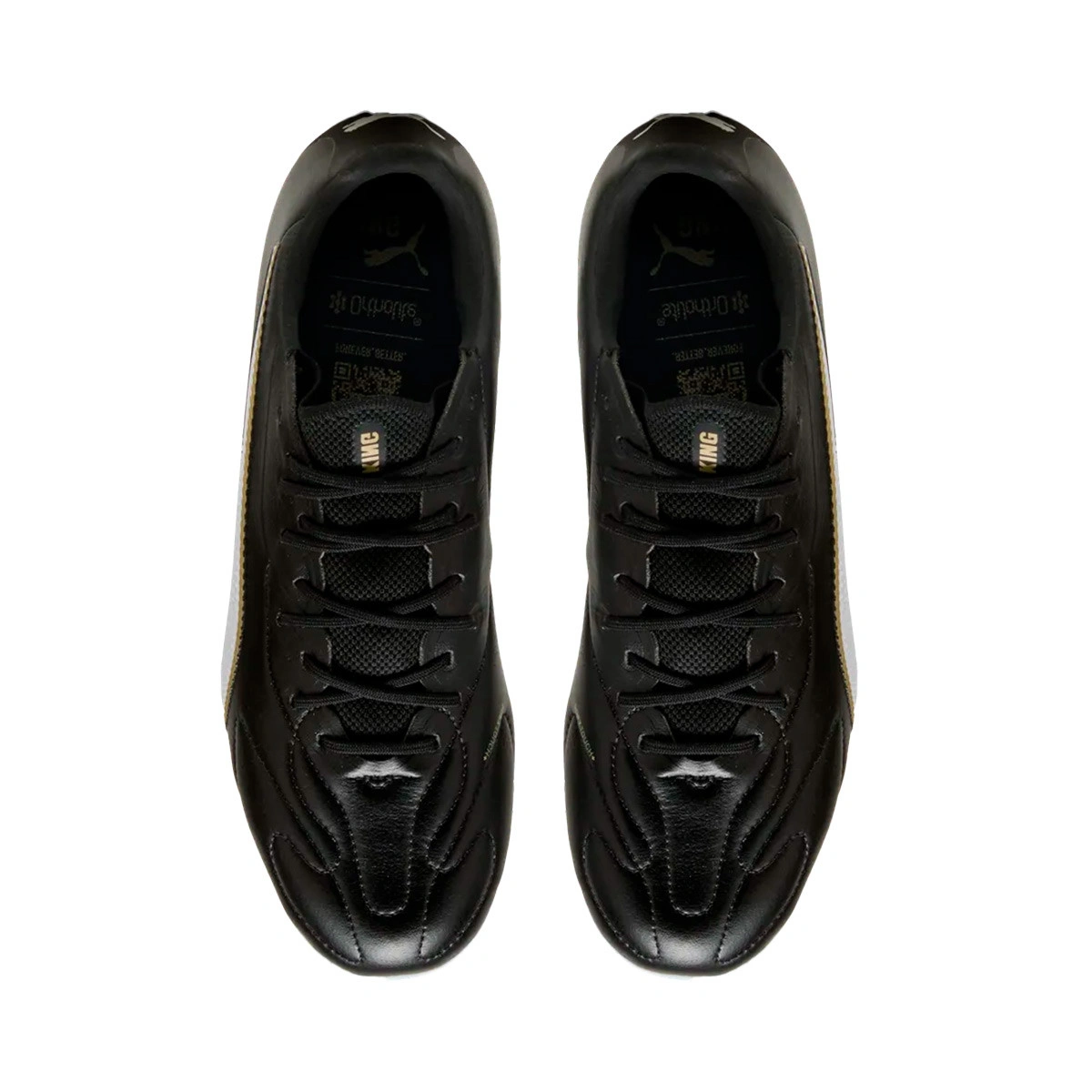 Puma King 20 Match Football Boots FG/AG for use on natural and artificial grass pitches. Entry-level boots in Puma Black-Puma White-Puma Gold.