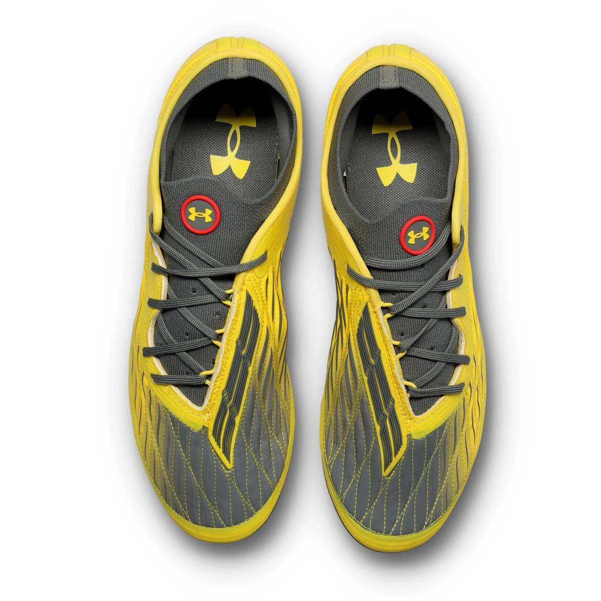Upper with UA Clone technology for a custom fit in any size. Inner layer of flexible, authentic material moulds to the foot for a glove-like fit. 3D printing for improved touch and control and silicone in contact areas for better kicking.