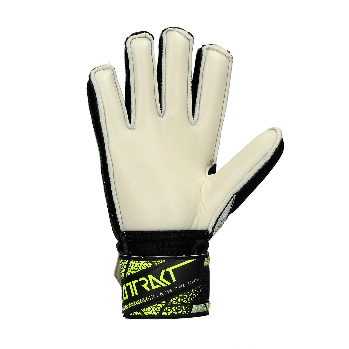 Introducing the Attrakt Solid kids' gloves by Reusch, ideal for young goalkeepers full of energy! These gloves are designed with children's comfort and safety in mind, offering a durable latex palm that ensures a good grip in both dry and wet conditions. This way, your little ones can catch the ball with ease in any weather.