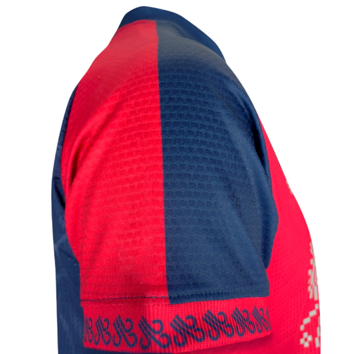 The Cagliari Home Kit jersey for the 2025-2026 season by EyeSport is a true gem for the club's loyal supporters. This jersey embodies all the team's passion with its striking navy blue design, featuring a sublimated print inspired by the reflections of the Sardinian sea.